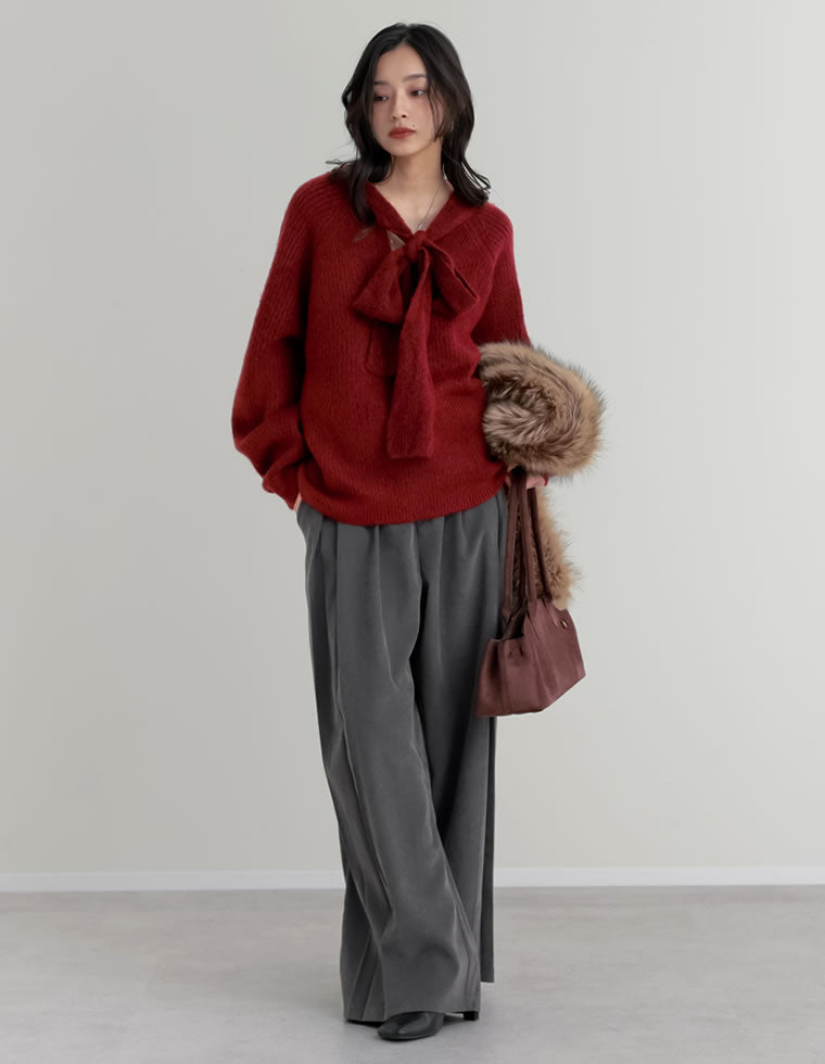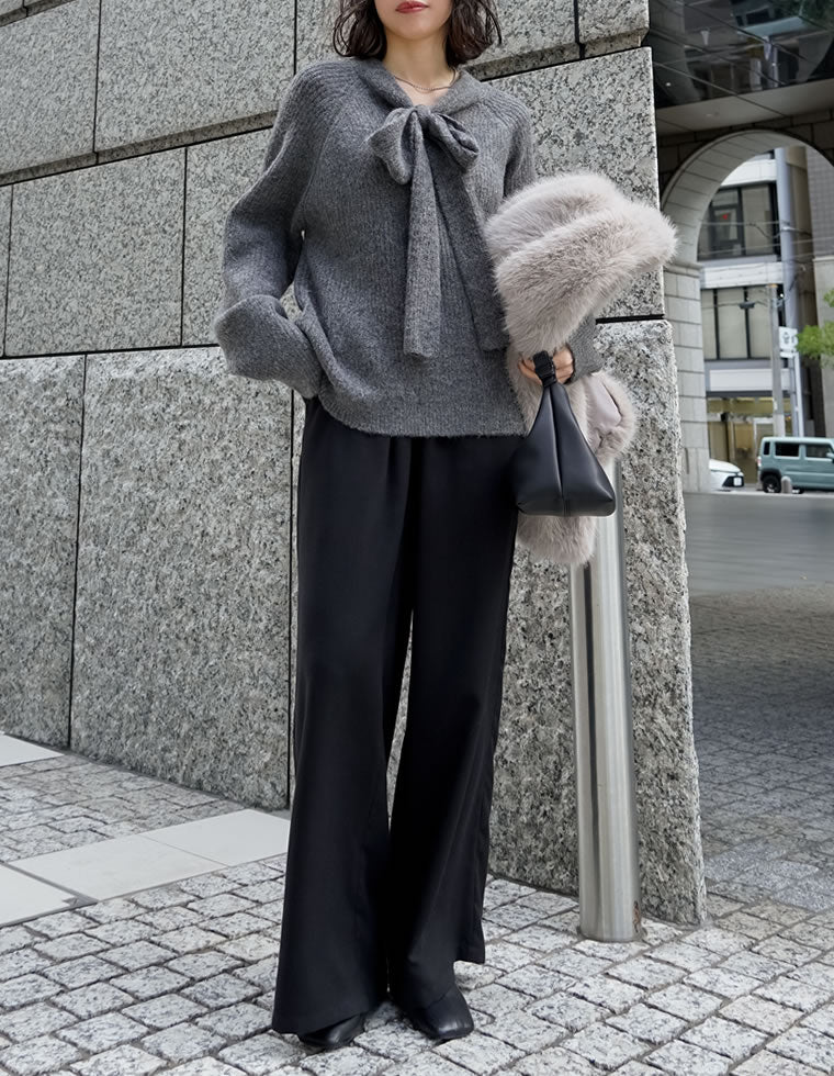 大人のロマンチックな雰囲気を与えてくれるリボンデザインが、今季注目のトレンド。 レイヤードスタイルやアウターを羽織った際にも映える、程よいボリューム感にこだわりました。 どんな装いにもフェミニンな華やかさをプラスできるのが魅力。 特別なお出かけや、家族・友人とのパーティーシーンにもおすすめのデザインです。