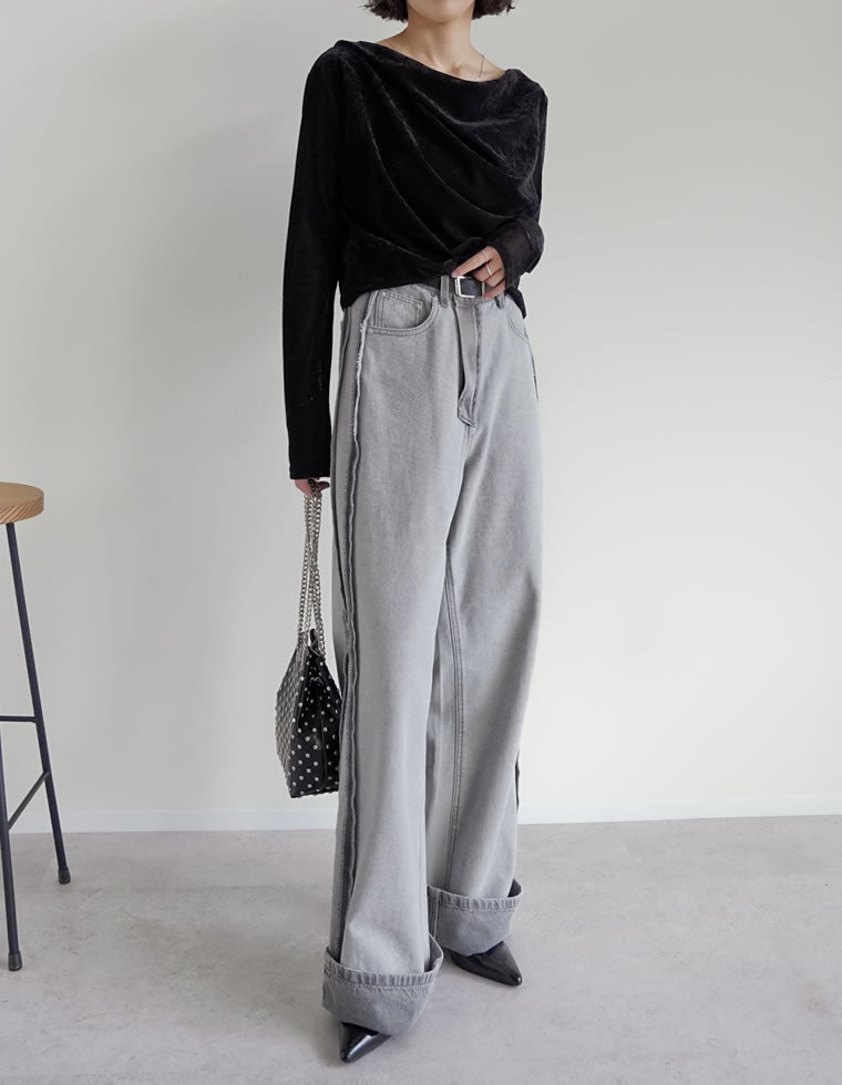 2025-2026年秋冬は、トレンド素材として「ベロア」が再注目。 なかでもRe:EDITでは、秋の立ち上がりから軽やかに取り入れられる「シアーベロア」が人気。 表面に表情のあるベロア素材は、カジュアルにもきれいめにもマッチする万能さが魅力。 ロンT感覚で着られるアイテムなら、重くなりがちな秋冬の装いに抜け感と奥行きをプラスしてくれます。 ジャケットやコートのインナーとしても映える、こなれ感のあるレイヤードスタイルが叶う注目素材です。