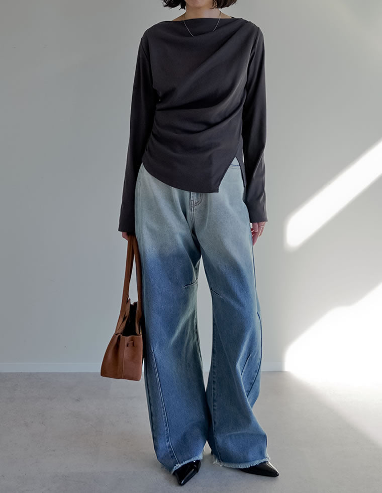 スタイリングにエレガントさを添える“ドレープ”も、2025-2026秋冬の注目キーワード。 Re:EDITでは、ドレープデザインをニットやカットソーに落とし込み、デイリーにも使いやすいアイテムに。 胸元に自然な陰影が生まれ、シンプルながらも上品な抜け感を演出します。 モードとフェミニンのバランスが絶妙な、大人にぴったりのトレンドです。