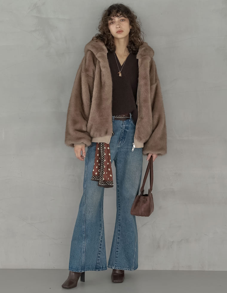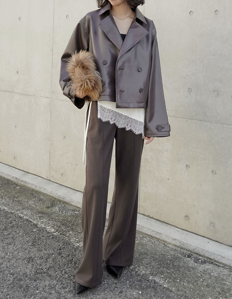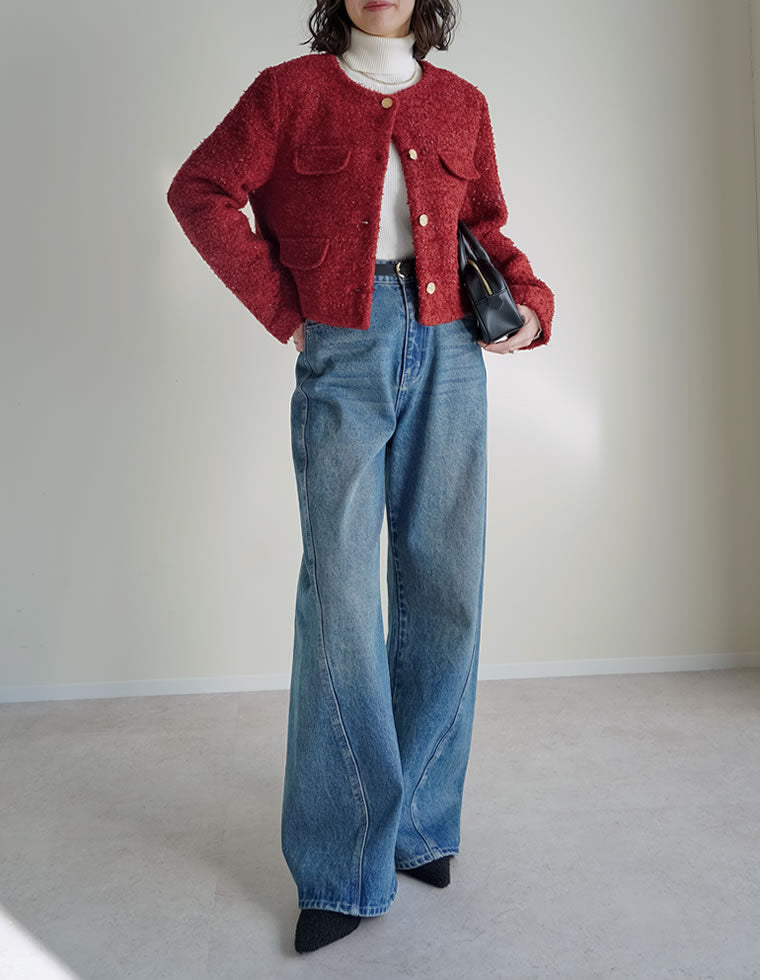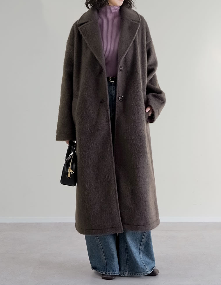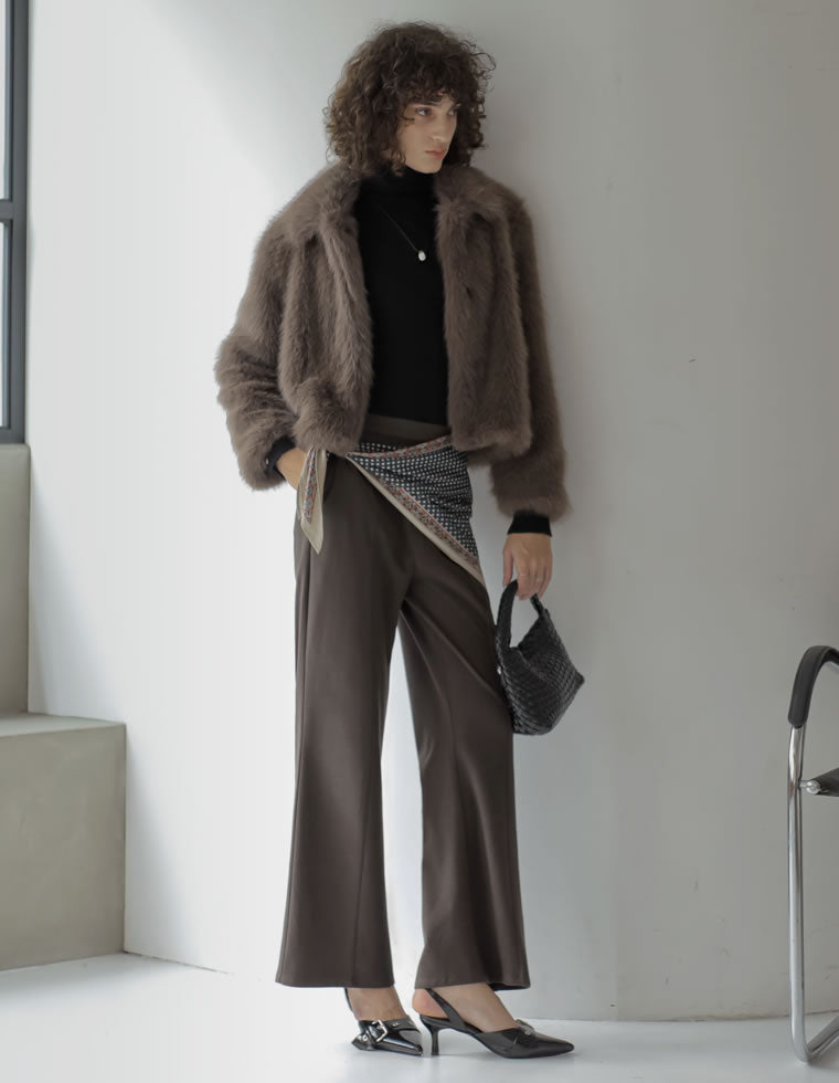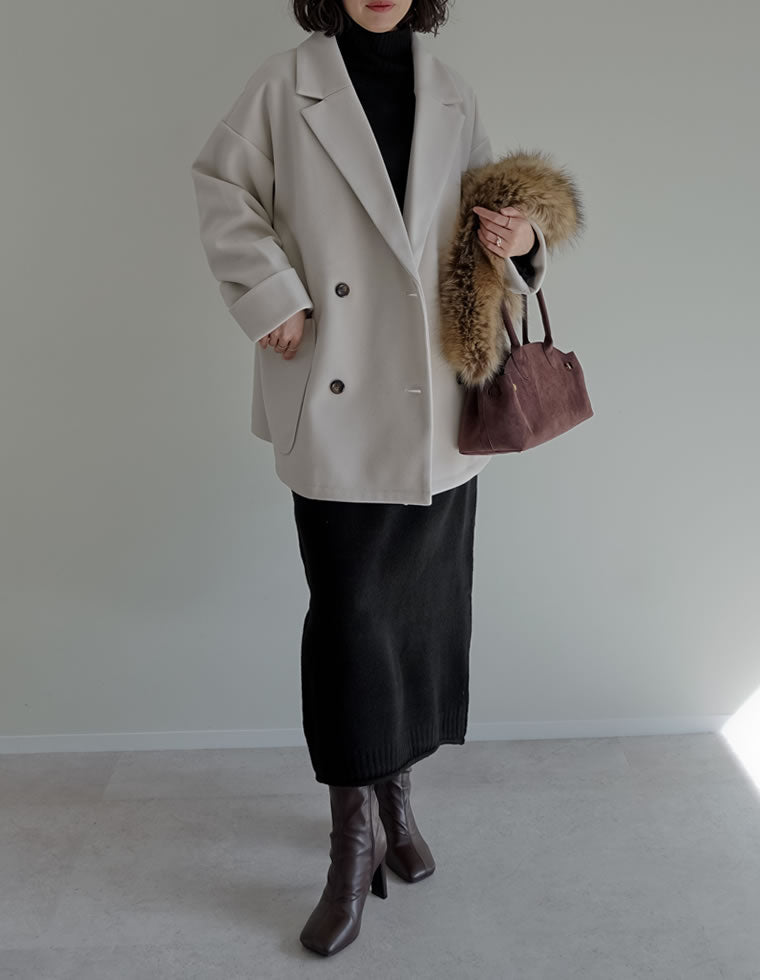 この秋冬のトレンドカラー筆頭といえばブラウン。落ち着いた印象を与えるブラウンアウターは、ワントーンコーデにもぴったり。ショート~ミドル丈のアウターでスタイルアップを狙ったり、ドロップショルダーで抜け感をプラスした着こなしもおすすめです。柔らかい素材感やゴールドボタンなど、さりげないディテールが効いたアイテムなら、羽織るだけで旬な雰囲気に。黒よりも柔らかく、ベージュよりも引き締まるブラウンで、こなれた大人の冬スタイルが完成します。
