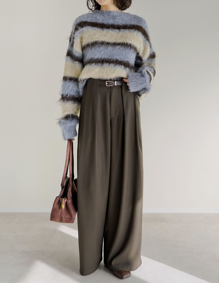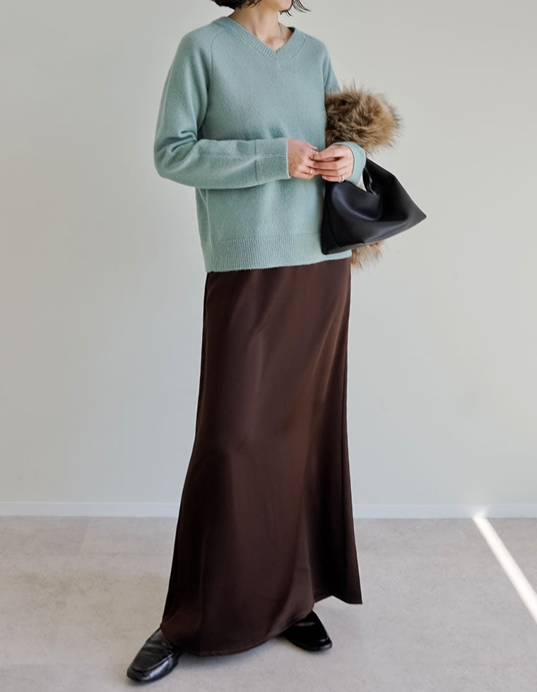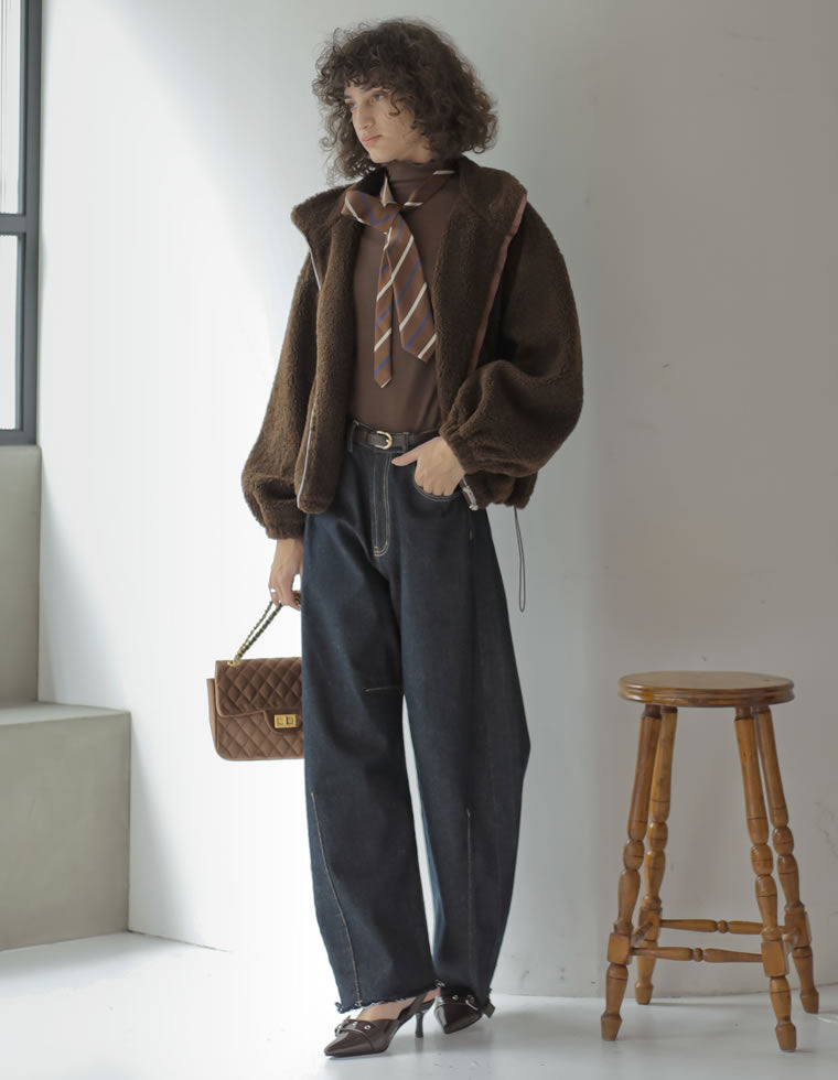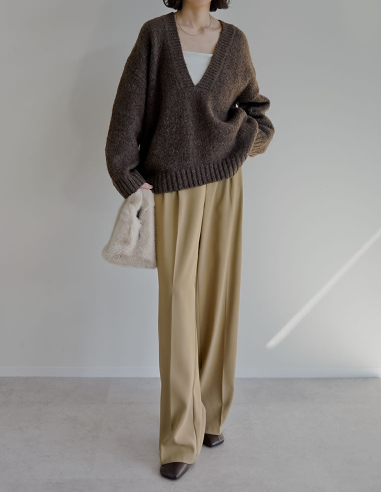 ニットやプルオーバーなどのトップスも、秋冬はブラウンを選ぶのが正解。ほどよい落ち感のあるリブニットや、ハイネック仕様なら防寒とおしゃれを両立。ブラウンは温かみがありながらシックな印象も与えるので、通勤やフォーマルなシーンにも◎。ボトムにアイボリーやグレージュを合わせて軽やかに仕上げたり、デニムでカジュアルダウンするなど、どんなアイテムとも好相性です。