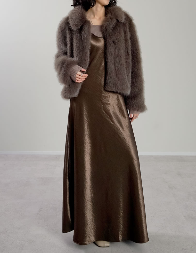 ワンピースをブラウンで選ぶと、柔らかく上品なムードに仕上がります。落ち感のあるサテンやジョーゼット素材なら、女性らしい揺れ感で華やかさもアップ。Iラインのワンピースはスタイルをよく見せてくれるうえに、コートとの相性も抜群。ブラウンの濃淡や素材違いでワントーンにまとめると、一気に垢抜けた印象になります。