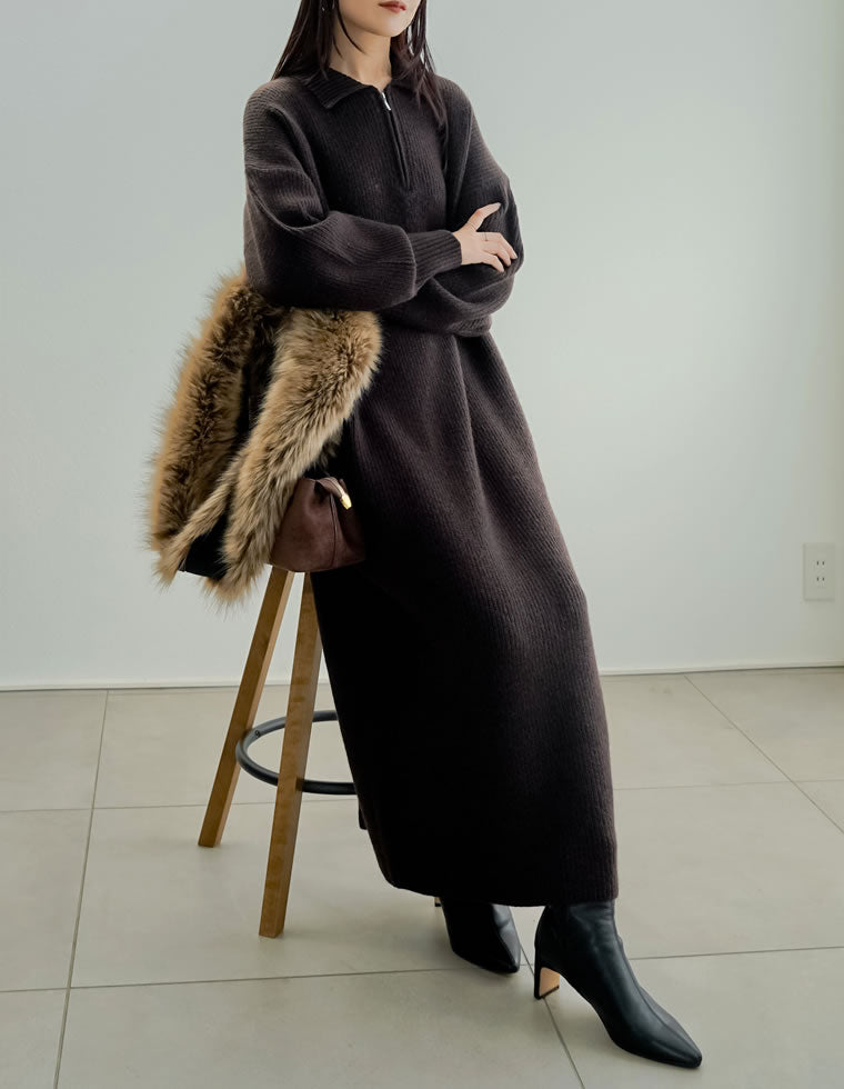 ブラックのワンピースは、1枚で着ても羽織りを合わせても洗練された雰囲気に仕上がる万能アイテム。タートルネックやIラインなど、シンプルなデザインでもシルエットや素材感で大人らしさが引き立ちます。アクセサリーやファーバッグなどの小物をプラスすれば、お出かけや特別な日にも◎1枚で完結する時短アイテムとして、忙しい日にも頼れる存在です。