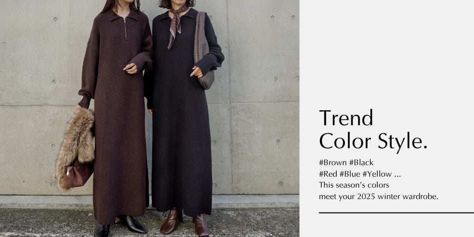 この秋冬は、マルチカラーのアイテムも注目。大胆な柄や配色が取り入れられたトップスやアウターは、1点投入でスタイリングの主役に。大人が取り入れるなら、ベースカラーがブラックやブラウンなど落ち着いた色味・配色のものを選ぶのがコツです。マルチカラーでも素材感やトーンを揃えることで、まとまりのある洗練スタイルが完成します。シンプルなアイテムとの合わせで、バランスよく着こなして。