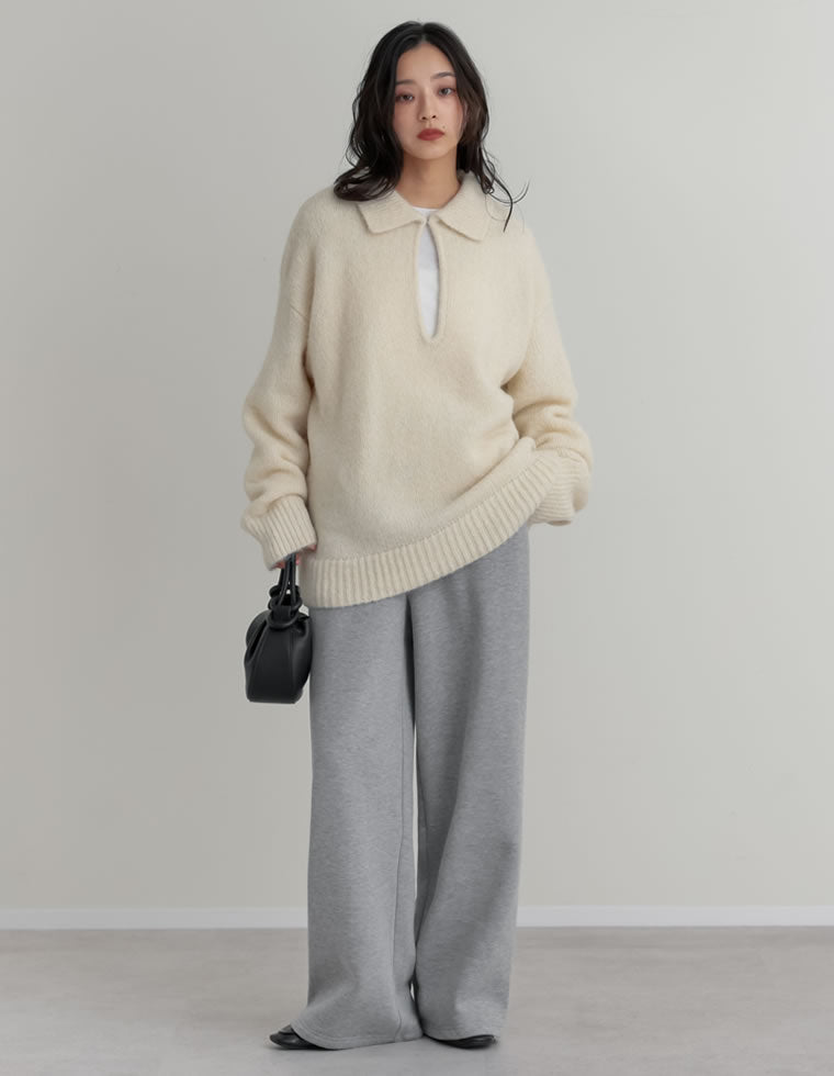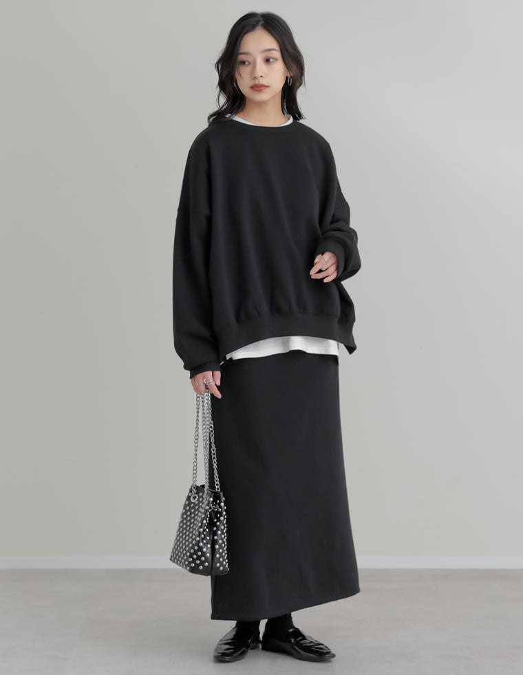 トレンドのカーブシルエット×裏起毛だからこれからの季節にぴったり! 襟付きのシャツやジャケットを合わせれば、上品見えも叶います。