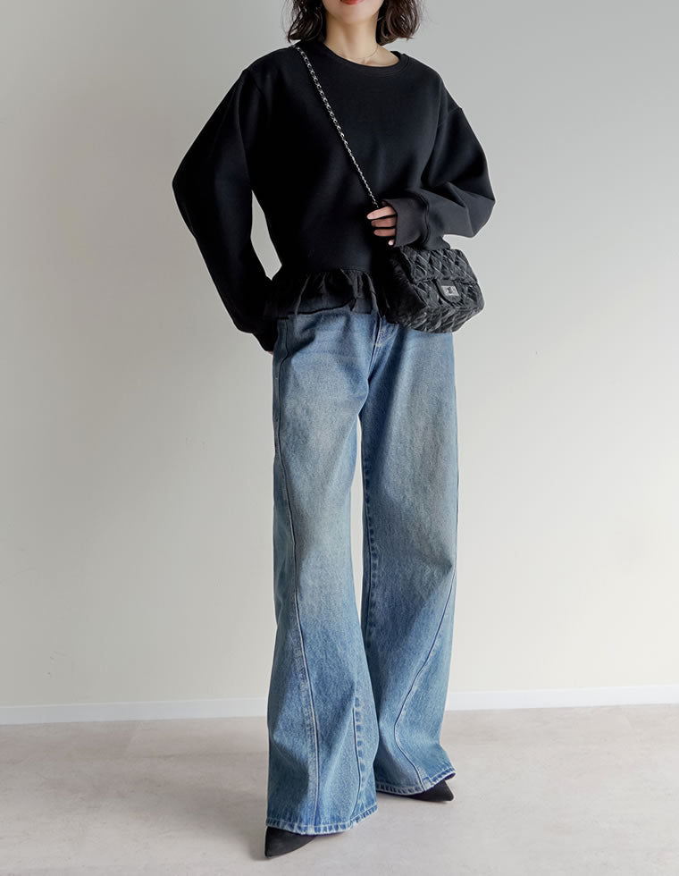 【あったか裏起毛】フリルがポイントのフェミニンスウェット