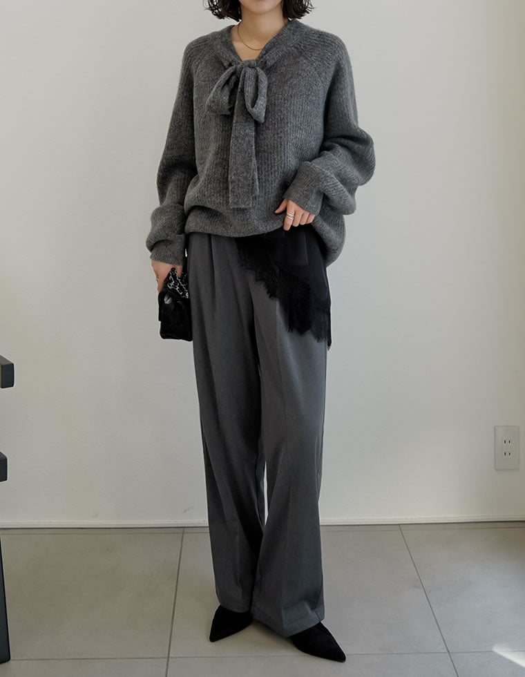 - 【モヘアタッチ】弾力のある中肉ニットであたたかい