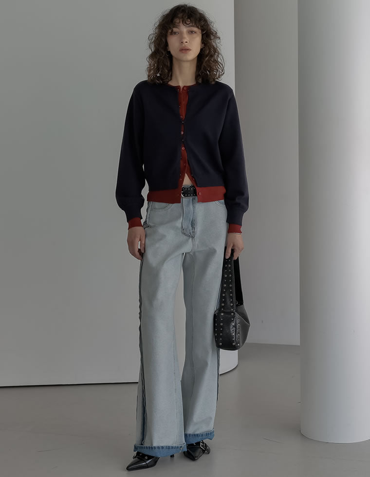 配色デザインでスタイルアップも◎パネルワイドデニム