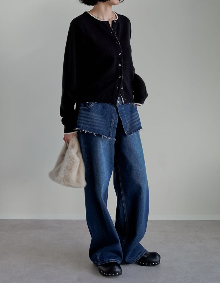 シンプルなTシャツやニットプルオーバーを合わせるだけでこなれる、スカートレイヤードライクデニム。 ヒップラインや太ももが気になる大人の悩みに寄り添い、“細見え&こなれ見え”を同時に叶えてくれます。 スカートも長すぎない丈感なので、トップスに悩まず着られて着回しの効く新鮮なデニムです。