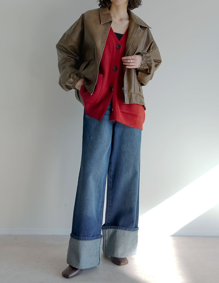 ワイドでしっかりと長めのロールアップがポイントのデニムパンツ。 ハリ感のある素材感はIラインを強調し、すっきりとした印象に。 ロールアップの幅は自分好みに変えることができるので、丈感が気になる方にも安心して着用いただけます。 ジャケットやコートを合わせれば、やや抜け感のあるきれいめスタイルにも◎