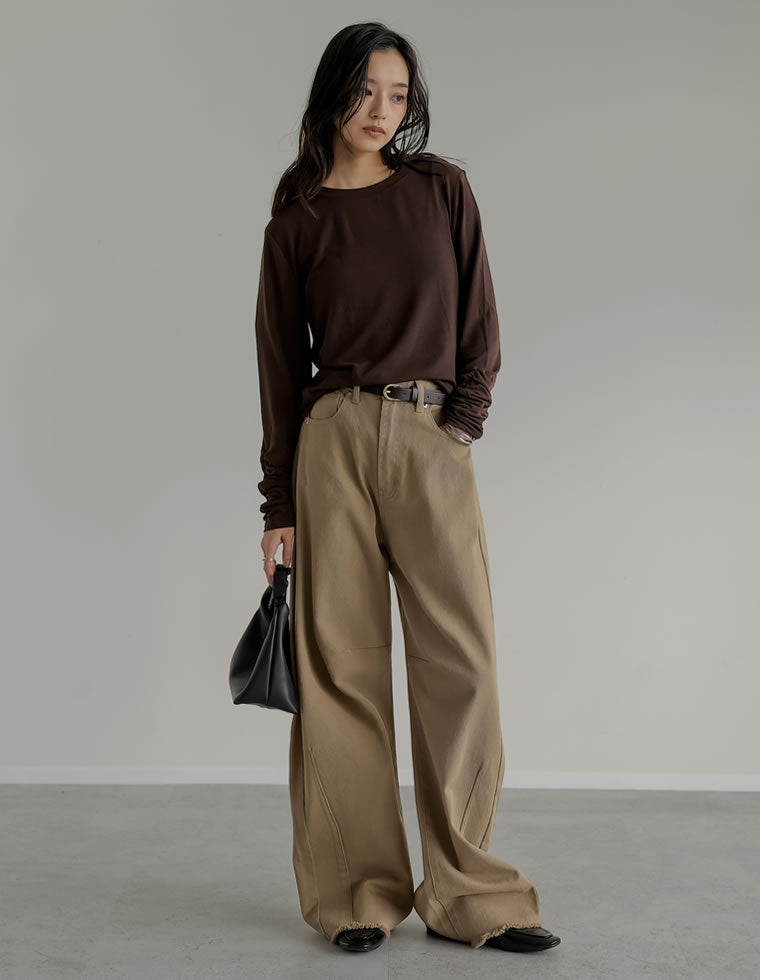 季節感たっぷりのコーデュロイも、カーブシルエットならほっこりせず都会的な表情に。 程よいゆるさが「大人の余裕」を演出し、シンプルなニットやアウターと合わせるだけで着こなしが決まります。 カジュアルになりすぎない、絶妙なバランスを楽しんで。