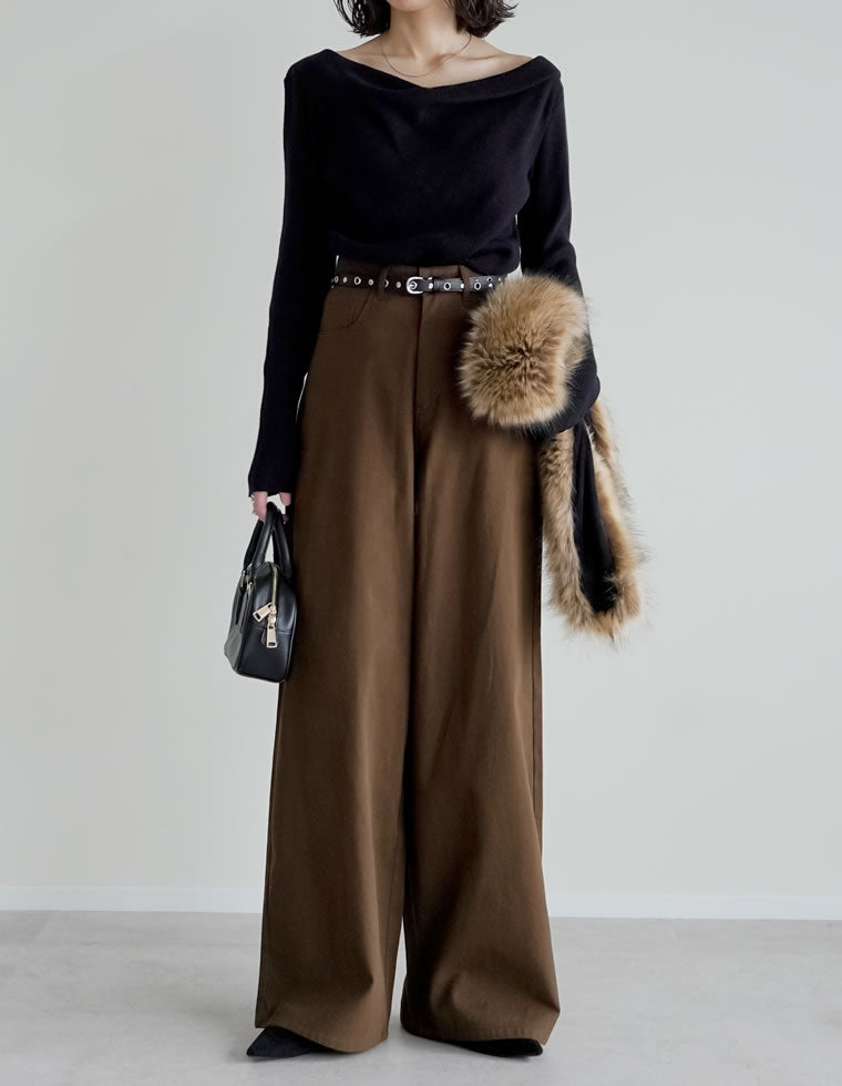 秋冬の通勤も快適に過ごせる裏微起毛素材ながら、着膨れしないスマートなシルエットが一番のポイント。 落ち感のあるワイドラインが、体型カバー&スタイルアップ。 暖かさもきれいめシルエットも両方叶えたい!大人の女性に寄り添うワイドパンツです。