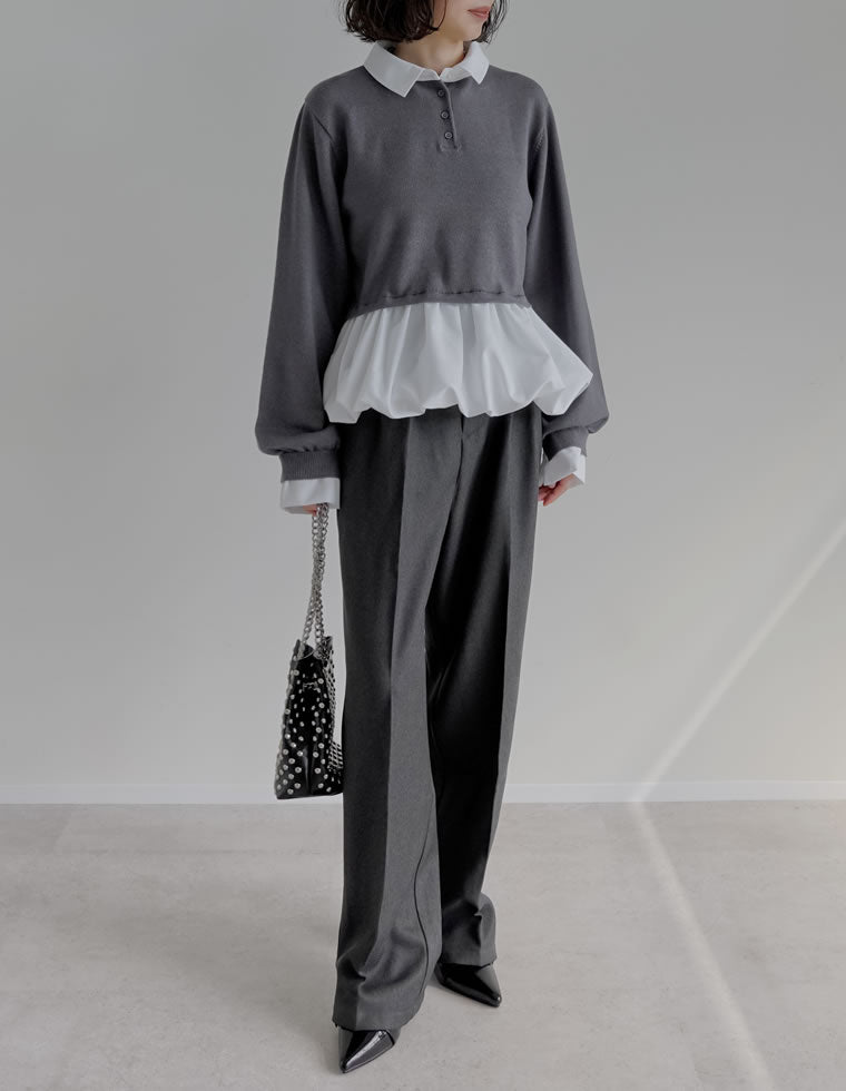 - 【機能性×フレアパンツ】ペプラムトップスを合わせてフェミニンに