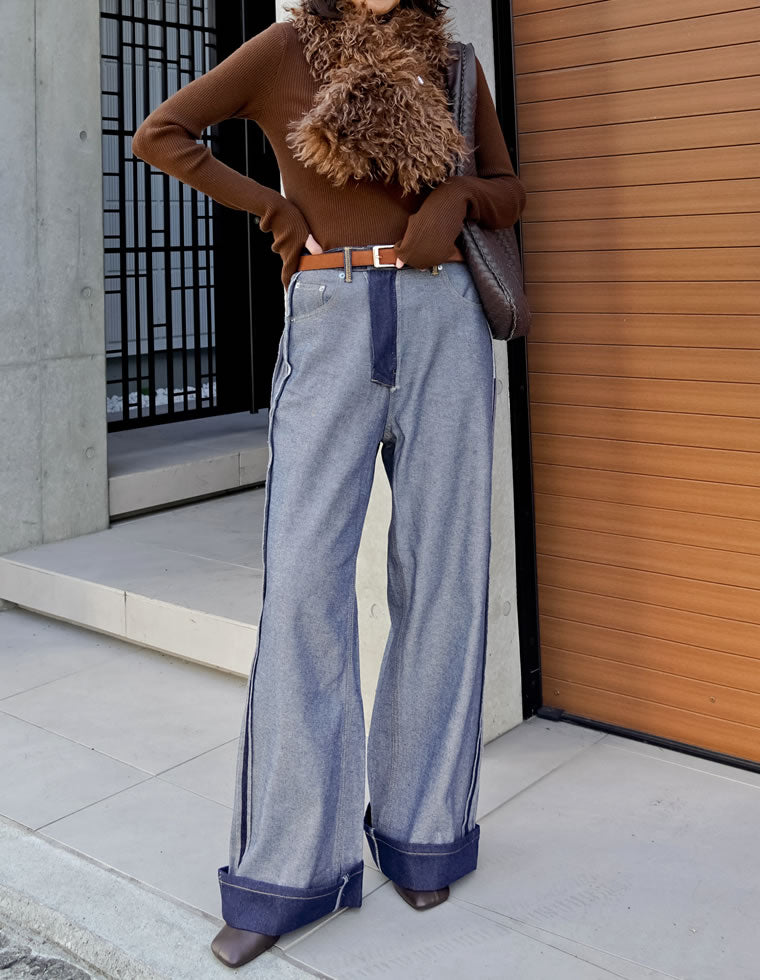 - 【リバースデニム】脚長効果のあるサイドラインと配色デザイン
