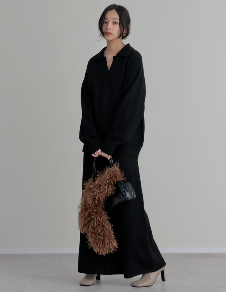 年末年始になると、いつもとちょっと違うお出かけも多発! そんな時にワンツーで着るだけで決まるセットアップならこれ。 すっきり見えのキーネックで抜け感もあるから、ほっこりしがちなニットアップも女性らしくまとまる!
