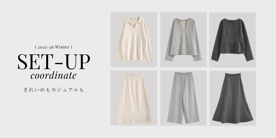ジャケット×パンツのセットアップや、2点セットでお得なセットアップもご用意しました。