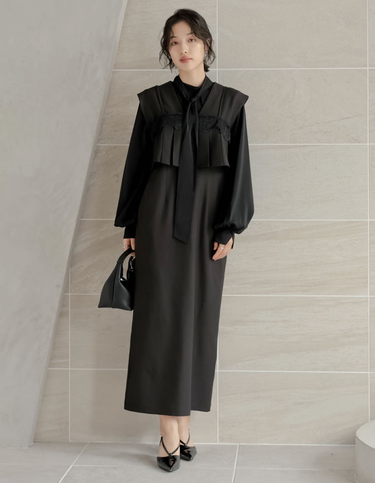 体型カバーも華やかさも叶う!【2点セットビスチェ付きワンピース】