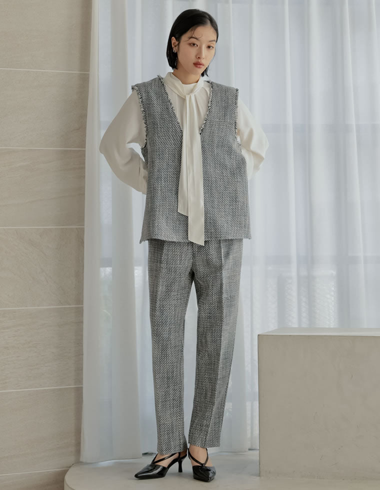 特別なシーンも日常使いもできる【モノトーンツイードパンツセットアップ】