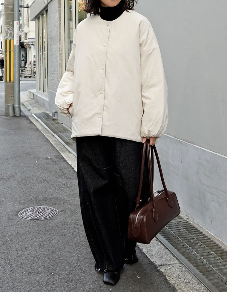 定番モノトーンだからこそ意識したい旬のバルーンシルエット
