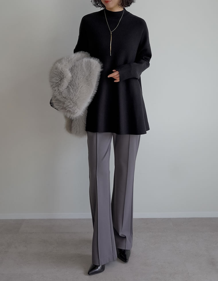 美しいシルエットが際立つニット×フレアパンツコーデ