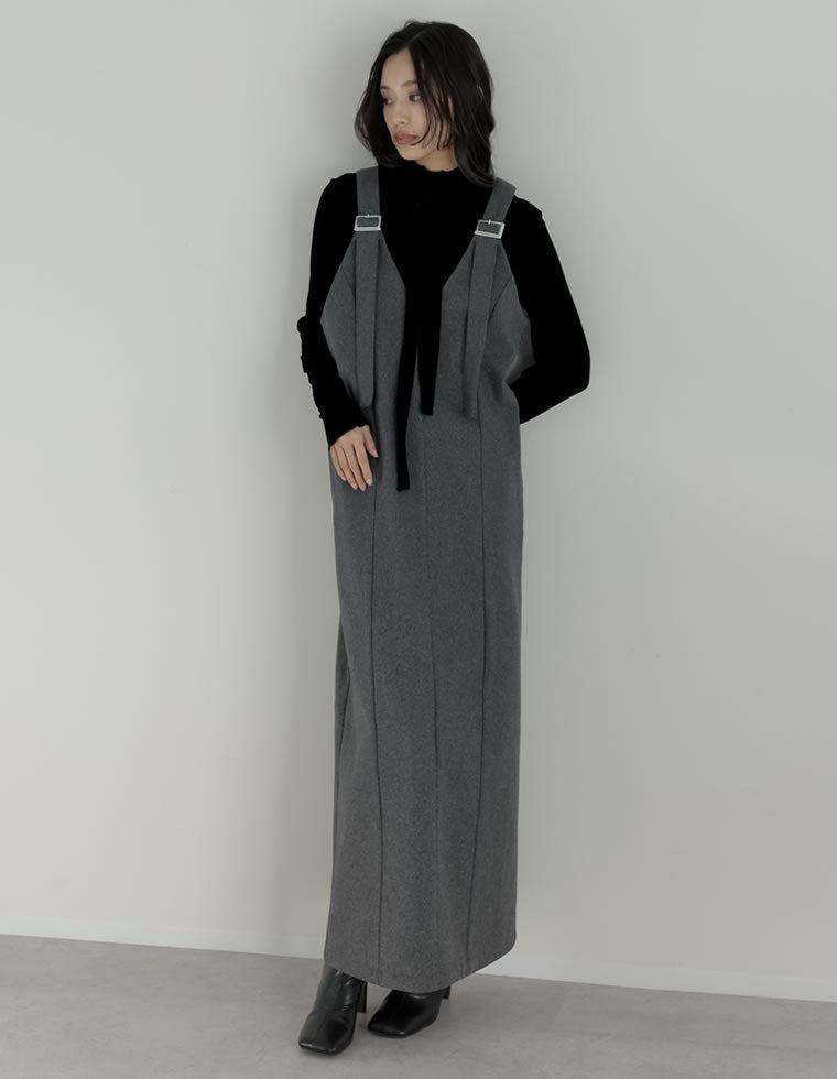 VネックとIラインで自然と華奢見え!ウールライクジャンパースカート