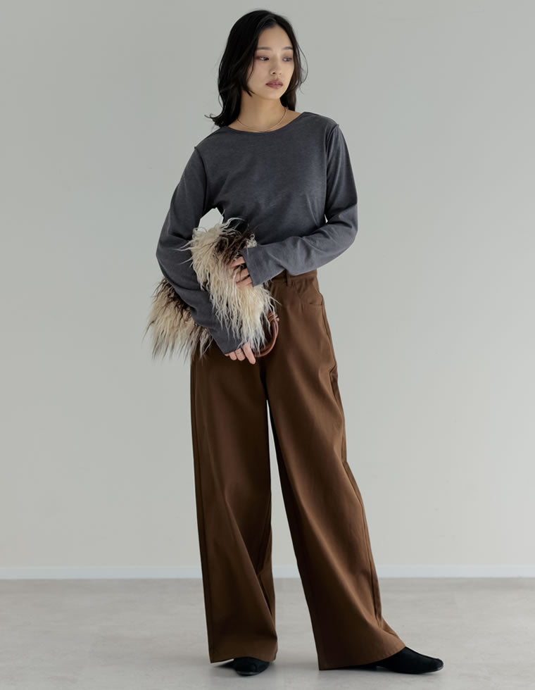 寒い時期でもニットよりTシャツを着たい! そんな方にぴったりなのがこちらのカットソー。 裏微起毛で、表面はさらりとした着心地。冬の新定番アイテムです。 グレー×ブラウンの深みあるカラー合わせで、カジュアルないまっぽスタイルが完成します。