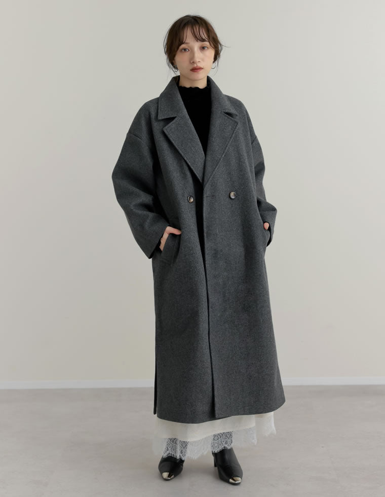 ウールライクで上品見えするロングコートは、真冬のお出かけにぴったり。 サイドに入ったスリットが重たい印象を軽減し、モードな着こなしに仕上がります。 シーンやトレンドを問わず着用できる、長く愛用できる一着です。