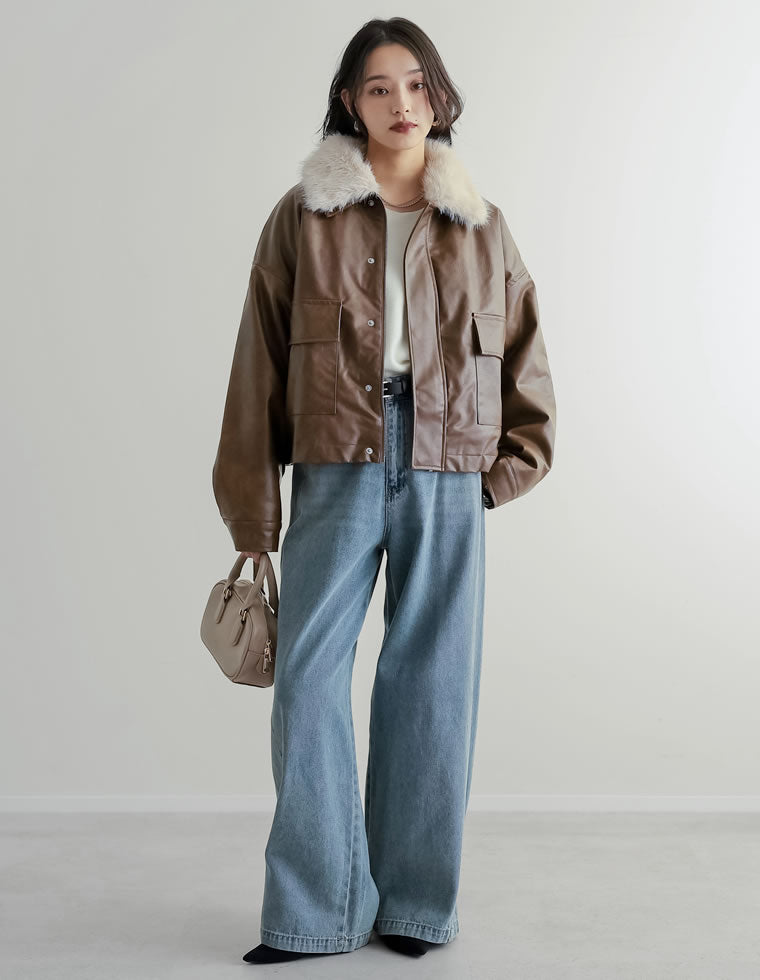 軽くて暖かい!襟ファーが取り外せるレザージャケットコーデ