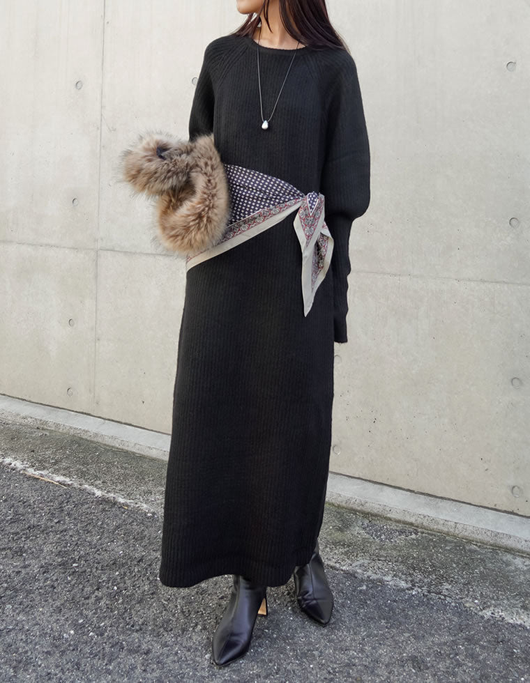 ボリューム感のある袖と表情豊かな畦編みが特徴のニットワンピース。 一枚でもしっかり暖かく、どんなアウターを羽織ってもバランスよく決まります。 シンプルなデザインだからこそ、ウエストマークなどのアレンジも自在。 寒い日のお出かけに頼れる一着です。