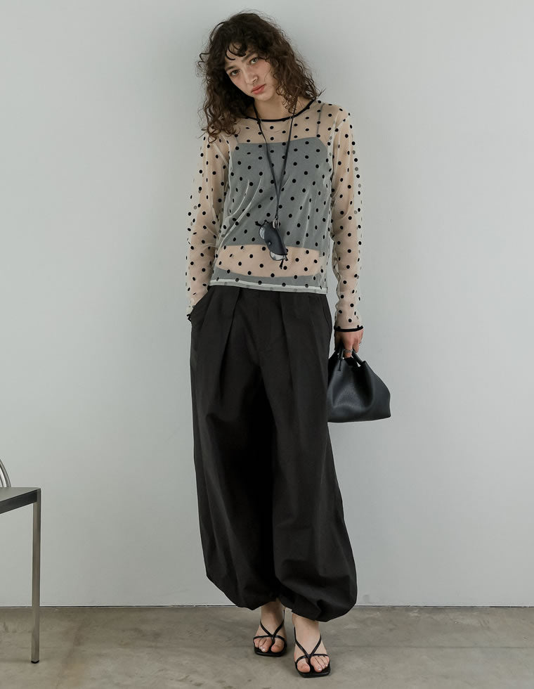 下に向かってボリューム感をもたせた「バルーンシルエット」が本格的にトレンドイン。 旬のハリ感を作り、美しいバルーンシルエットを描くパンツは、おしゃれな大人のマストアイテムです。 もちろん、低身長・高身長向けサイズも展開! コンパクトなトップスやシアー素材を合わせると、スタイルアップとモード感を叶えます。 トップスでも、裾にタックをいれたバルーンシルエットに注目が集まっています。