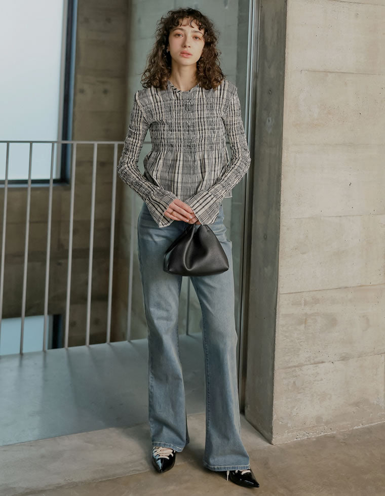春夏らしい軽やかさと華やかさを演出してくれるチェック柄。 チェック柄といえば、甘くかわいい印象をもっている方も多いはず。 Re:EDITの2026SSCollectionでは、小さめのチェック柄を取り入れ、トレンド感がありながらもきれいめな大人の印象に。 またアシンメトリーフリルや、ランダムの切り替えなど、カットにもこだわっており、今っぽい抜け感をプラス。 小ぶりなチェック柄なら、オフィスなどのきれいめシーンに着回しやすいのも魅力です。