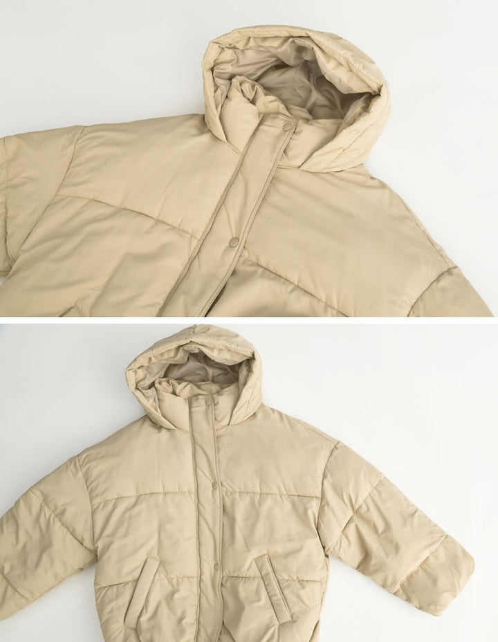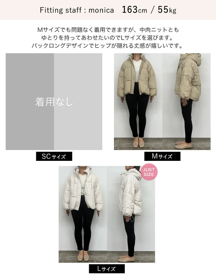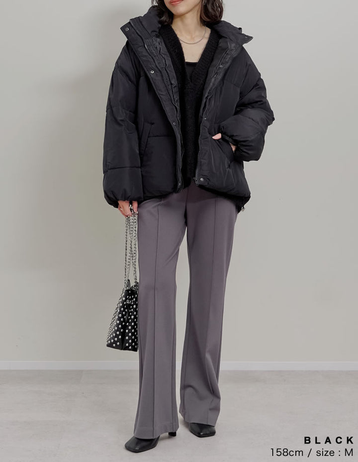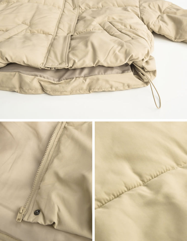 [低身長サイズ有]フード付きスタンドカラーフェイクダウン中綿ジャケット