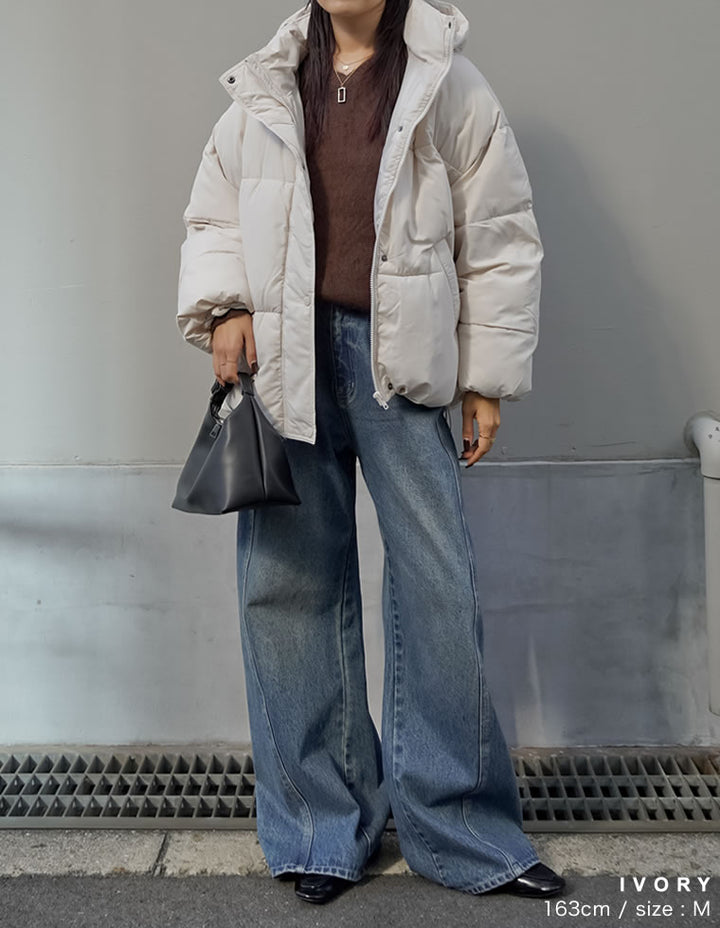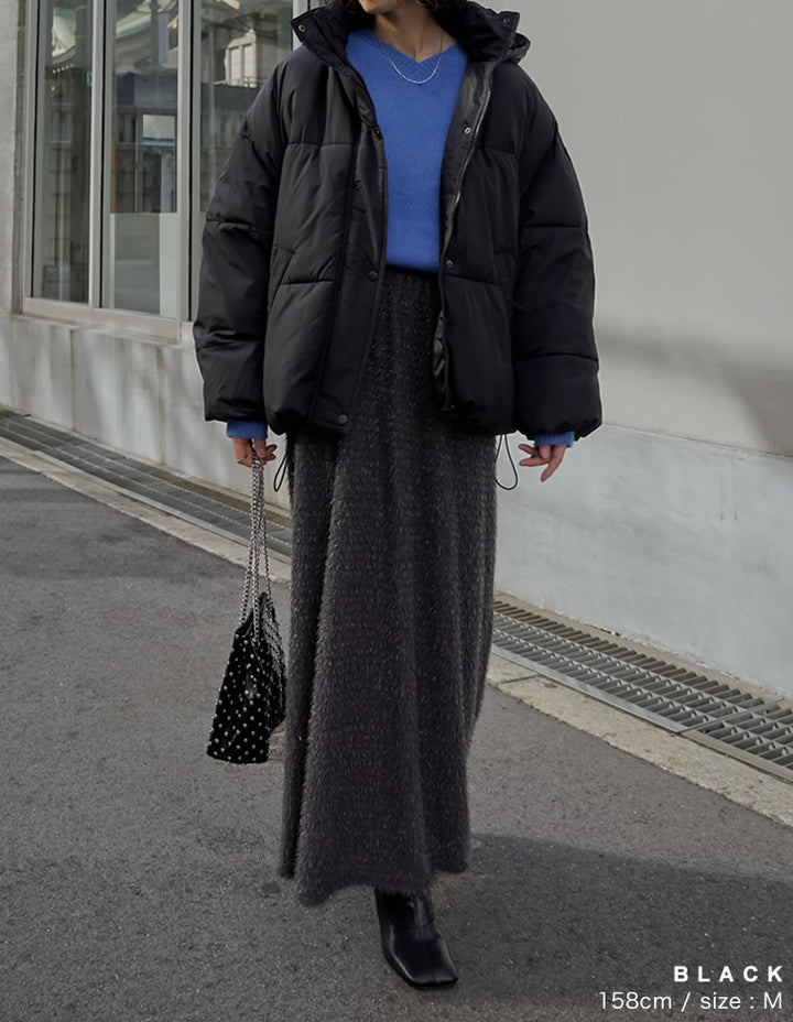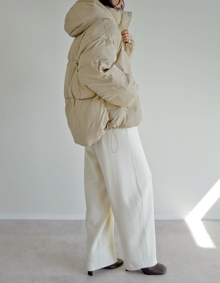 Iラインスカートやスラックスと合わせれば、上品なきれいめスタイルに。ワンピースの上からさっと羽織るだけで、バランスの取れたシルエットが完成します。コンパクトな丈感なので、ハイウエストボトムとの相性も抜群。リラクシーなニットやスウェットをインしてももたつかず、冬のお出かけスタイルをアップデートしてくれます。
