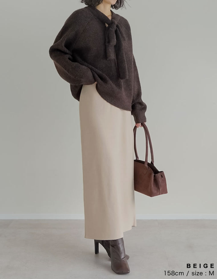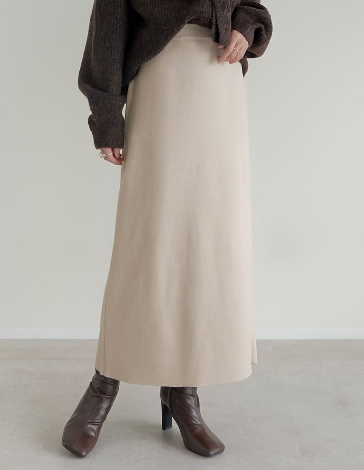 リラクシーな着心地ながら、きれいめな雰囲気に仕上がるニットスカートです。