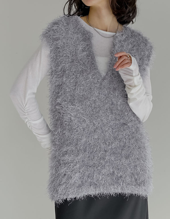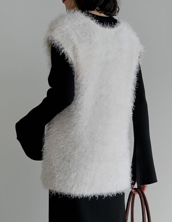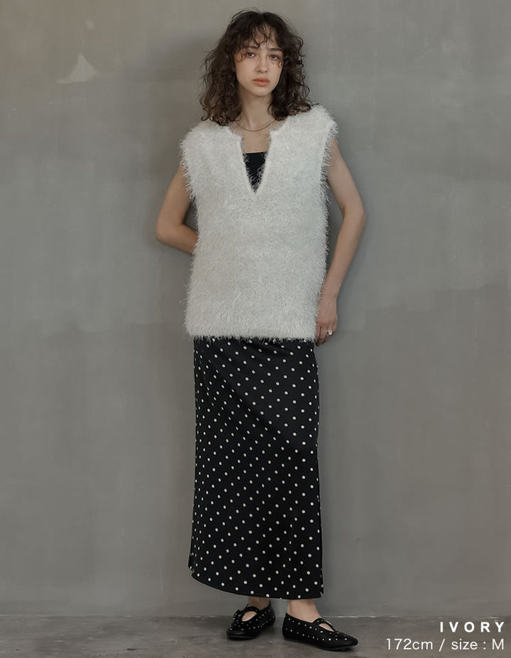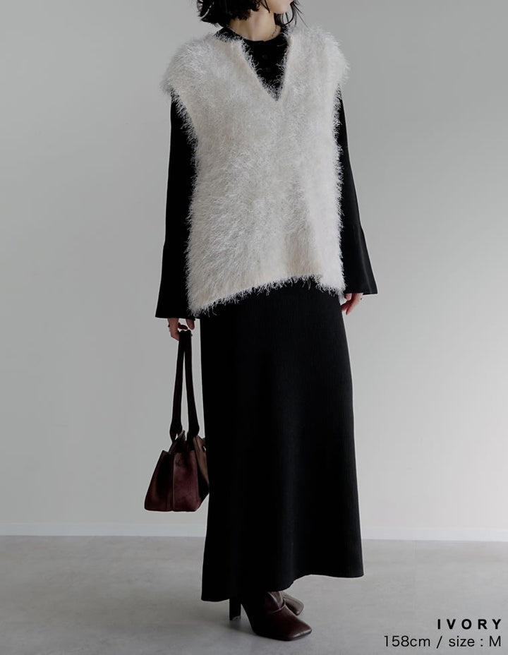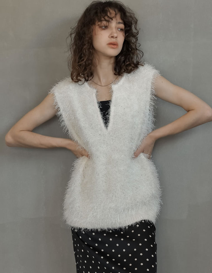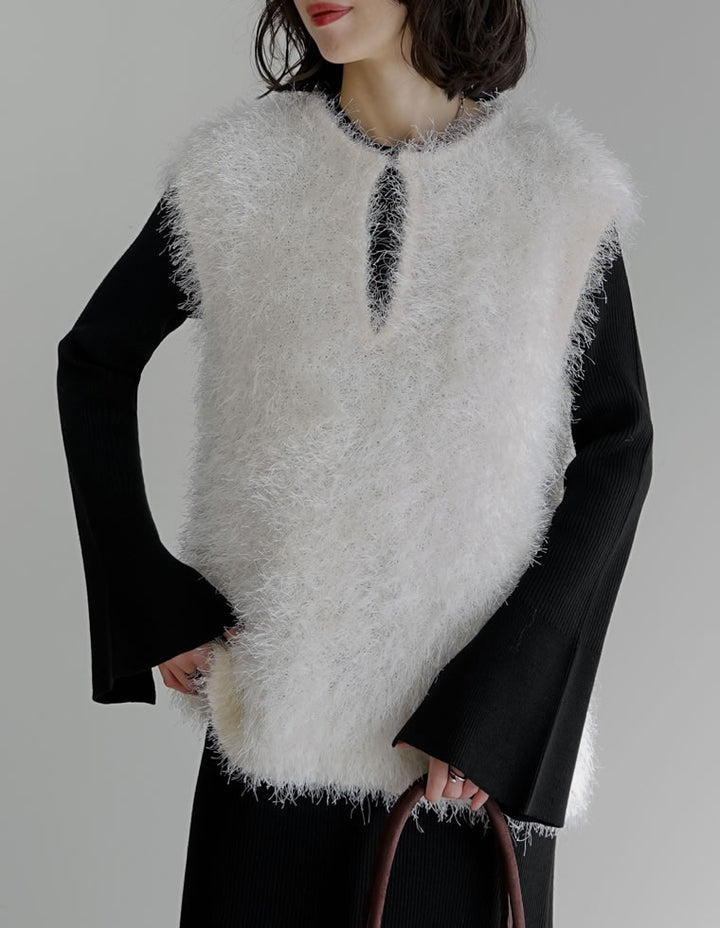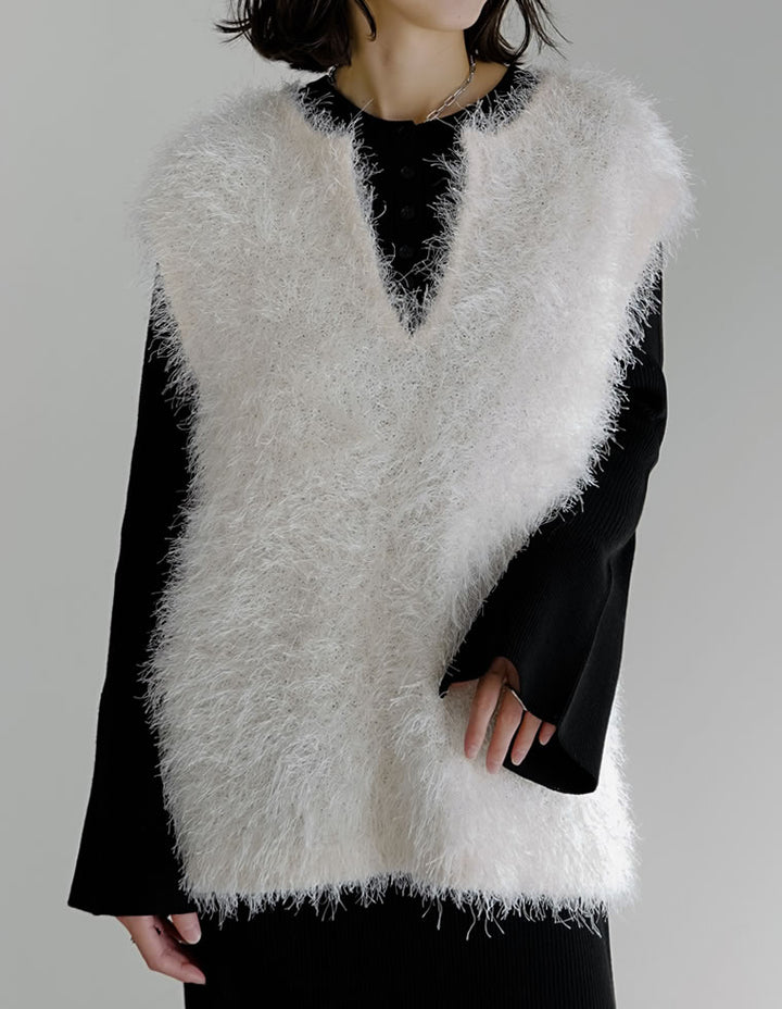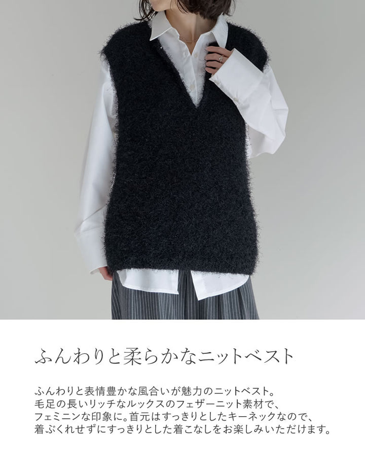 【TIME SALE 10%OFF】[2025AW COLLECTION]キーネックフェザーニットベスト