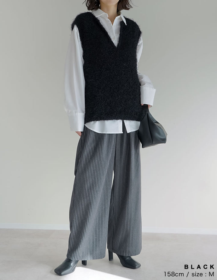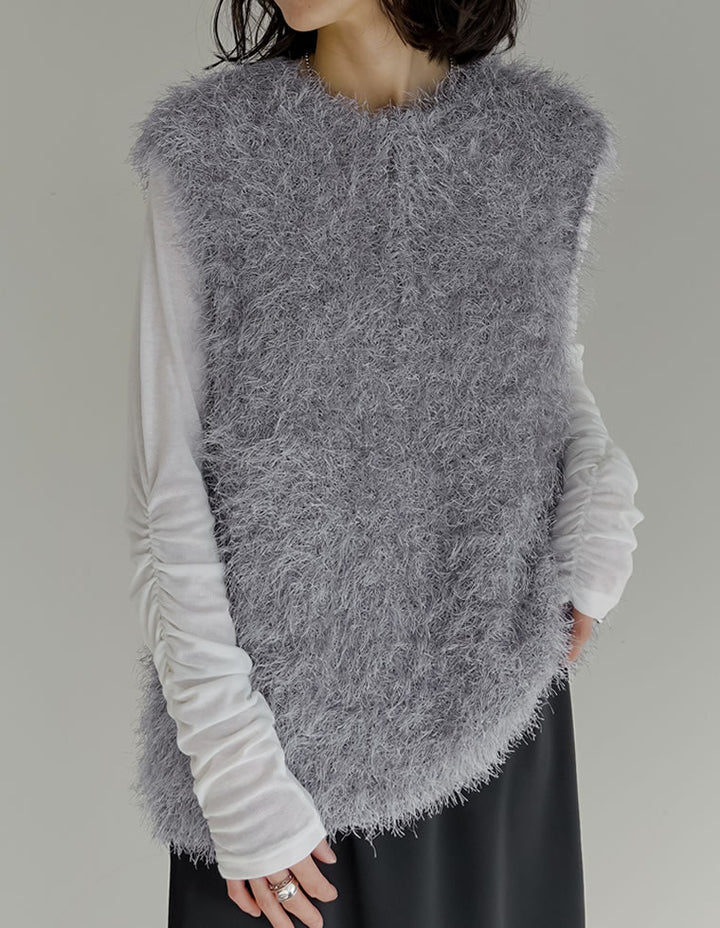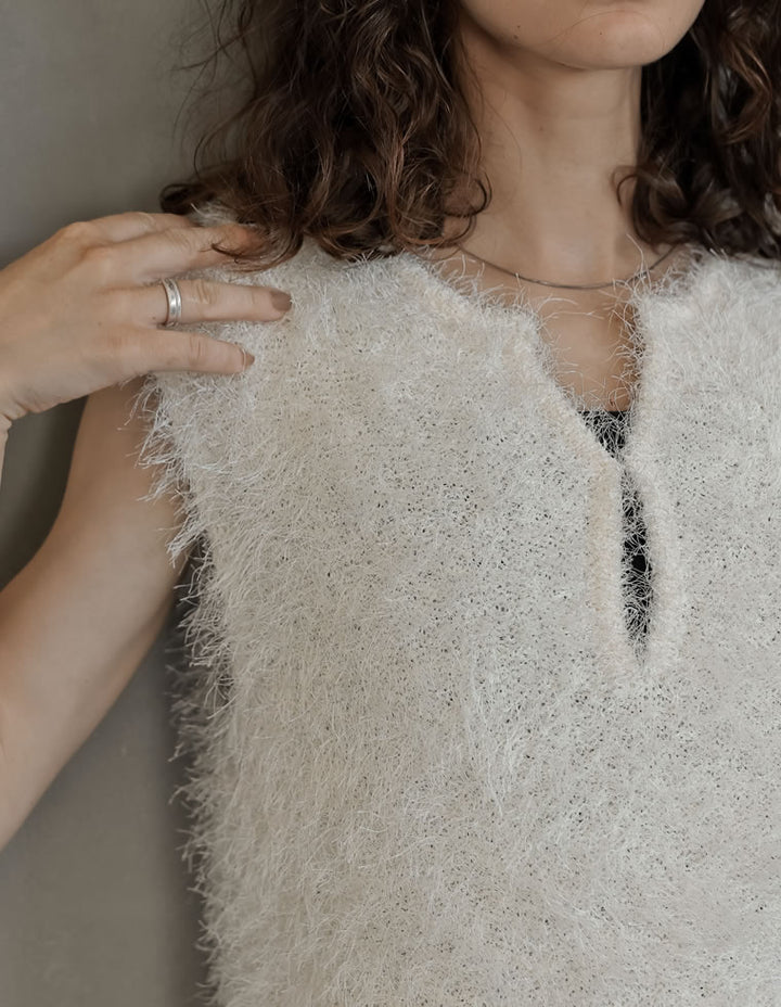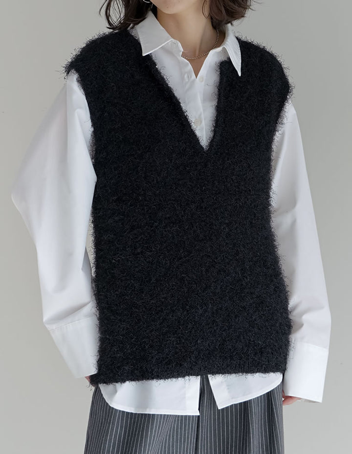 ふんわりと表情豊かな風合いが魅力のニットベスト。