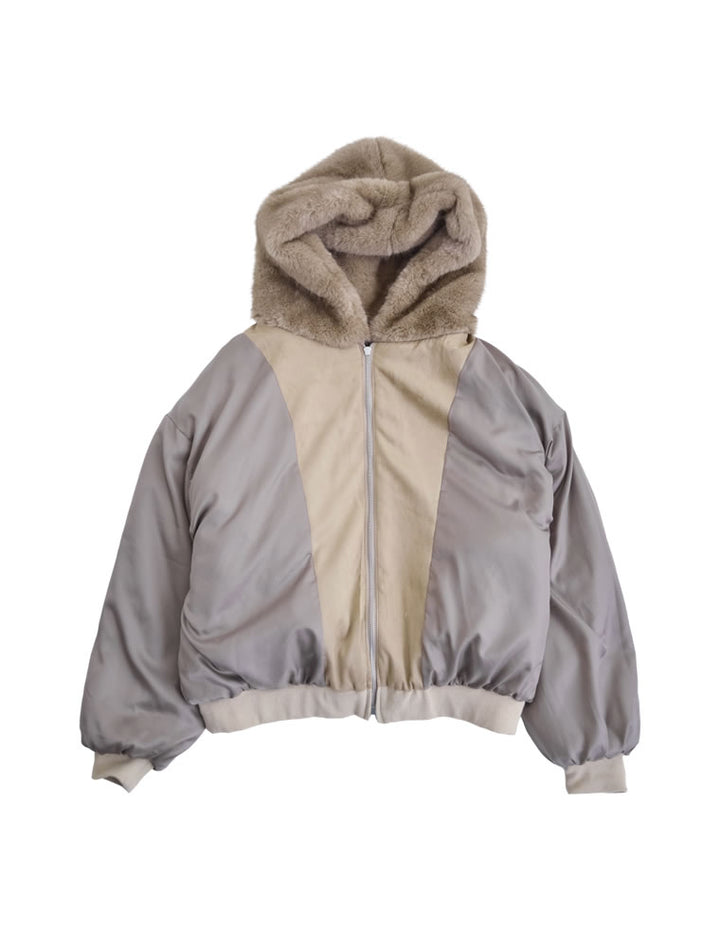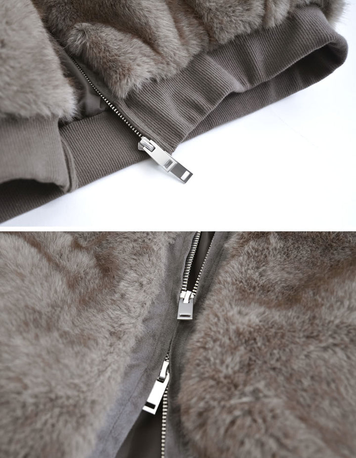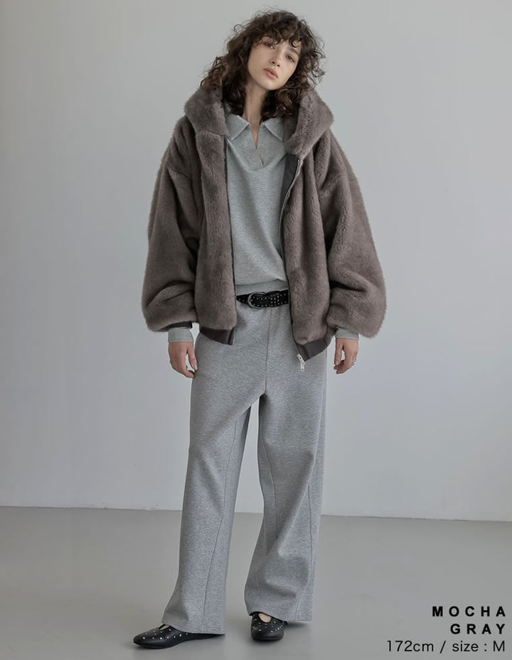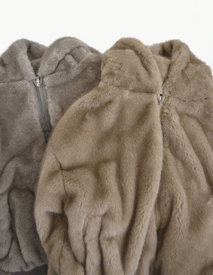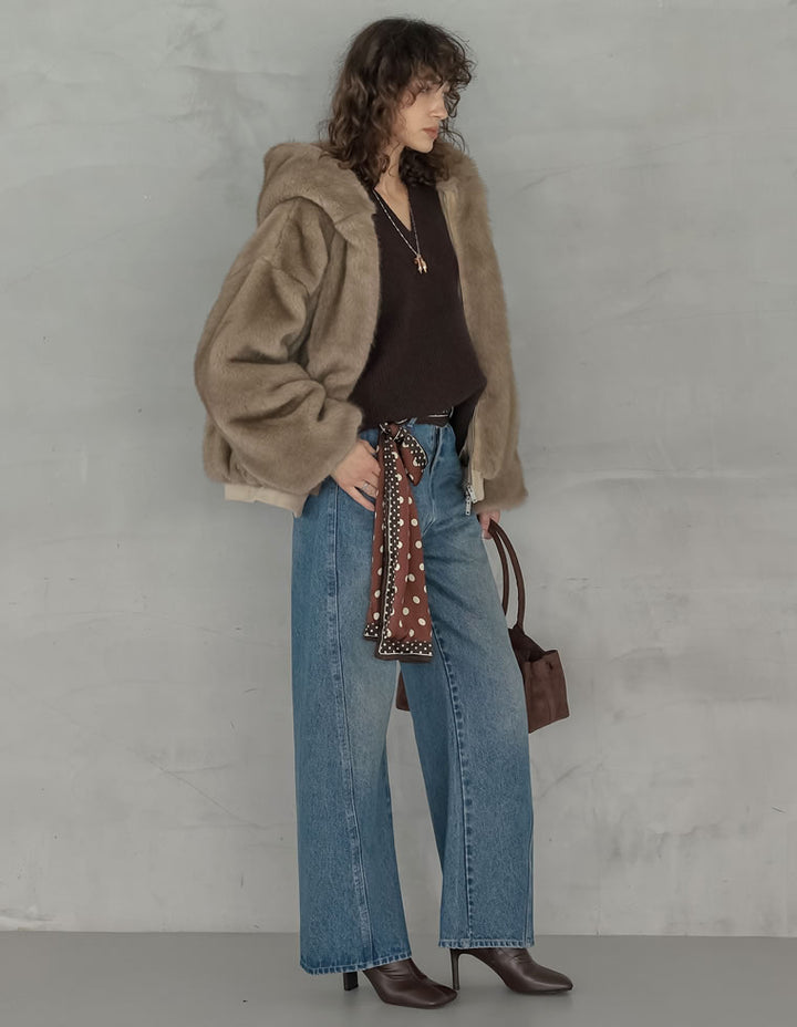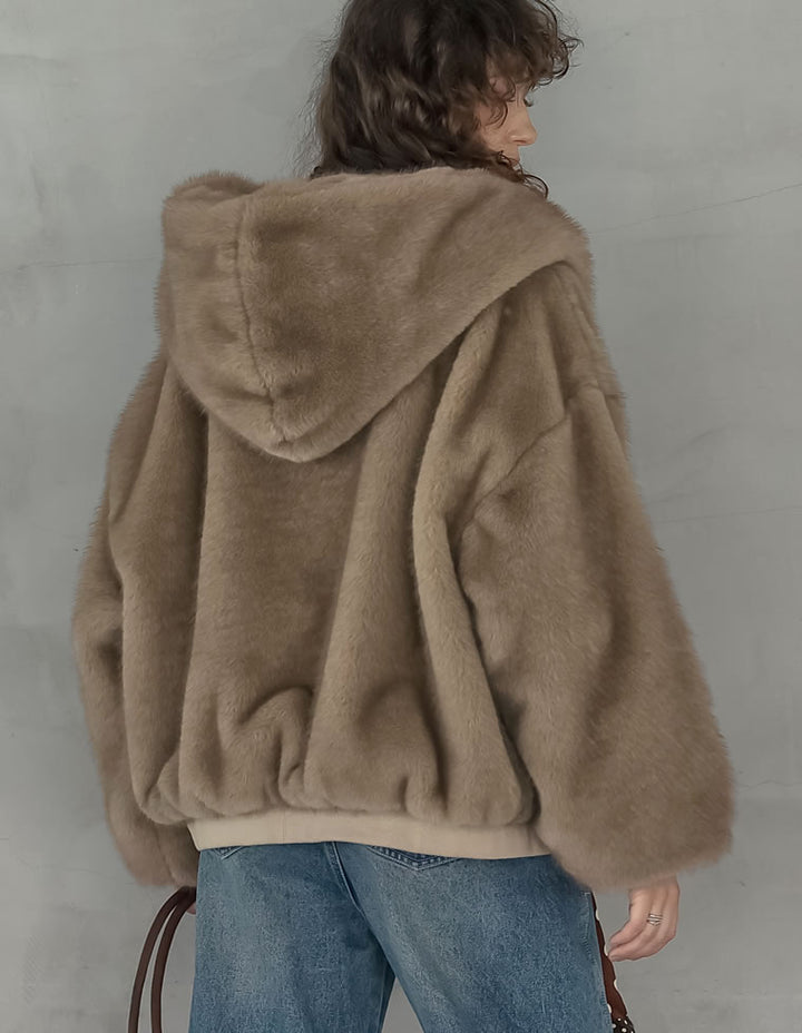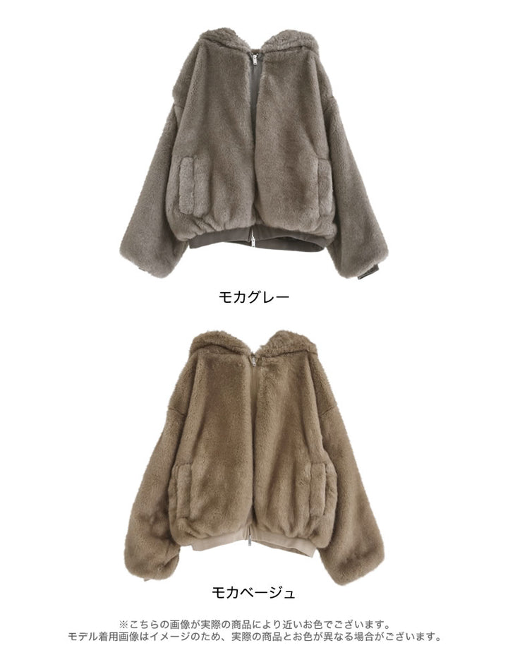 濃密なミックスファーを使用した、見た目にもあたたかなフーディーブルゾン。フード付きのデザインが今年らしいムードを演出し、モードカジュアルな印象を引き立てます。袖口と裾をリブで切り替えることで、全体を程よく引き締めつつ、カジュアルさをプラス。トレンド感と機能性を兼ね備えたダブルジップ仕様で、上からも下からも開閉が可能です。さらにジップラインにはフェイクスウェードの切り替えを施し、異素材ミックスのアクセントに。裾を開けてインナーのニットやシャツをのぞかせれば、抜け感のあるスタイリングが完成します。見た目のボリューム感とは裏腹に軽やかな着心地で、真冬まで暖かく快適に着用できる1着です。