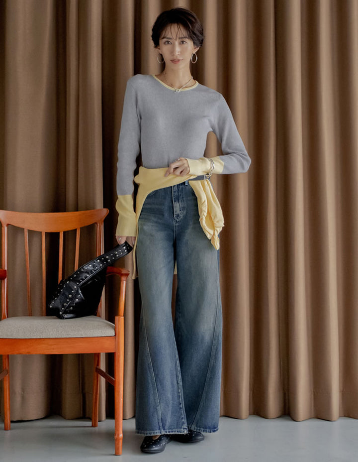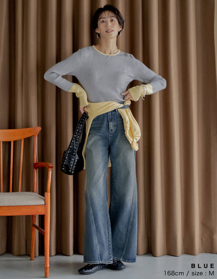 [2025AW COLLECTION][低身長/高身長サイズ有]サイド切り替えコットンデニムパンツ