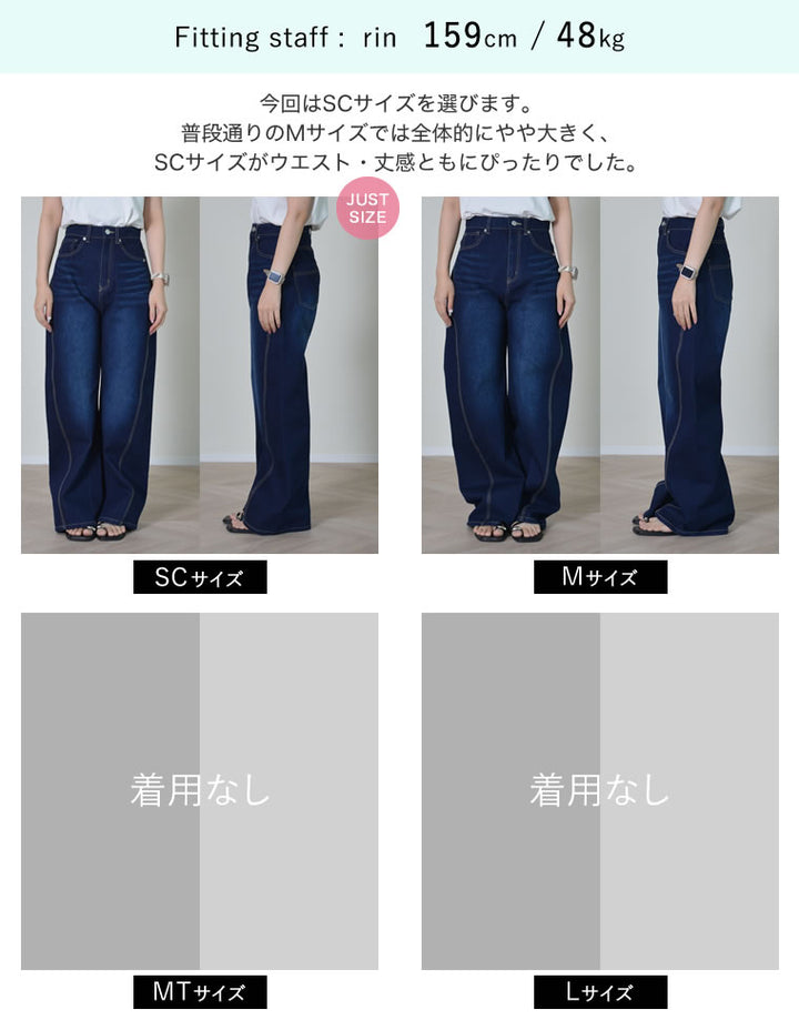 身長150~155cmくらいの方がバランスよく着ていただける丈感のリエディオリジナルサイズです。