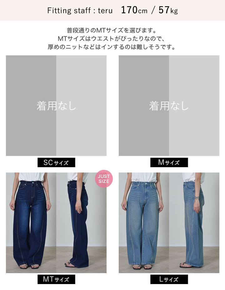身長165~170cmくらいの方がバランスよく着ていただける丈感のリエディオリジナルサイズです。