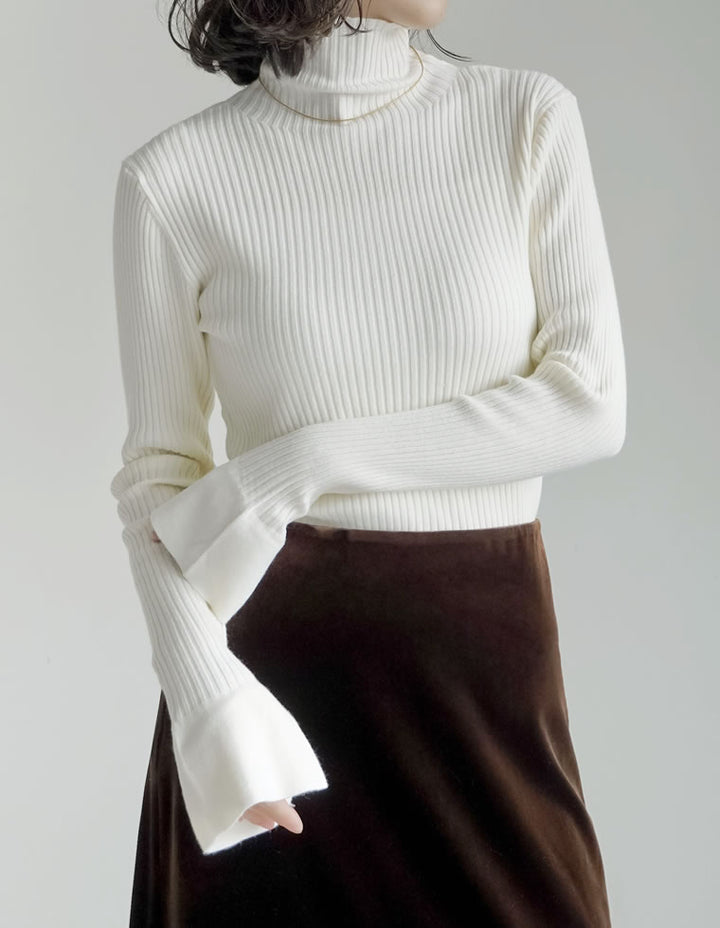 【クーポンで20%OFF ¥3,498⇒¥2,798】〖クーポンコード:SH_20_2511〗[2025AW COLLECTION][販売枚数3.4万枚突破!][華奢見えが叶う]フレアスリーブハイネックリブニットトップス