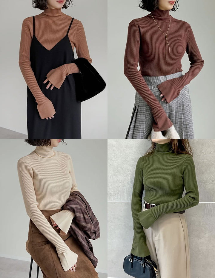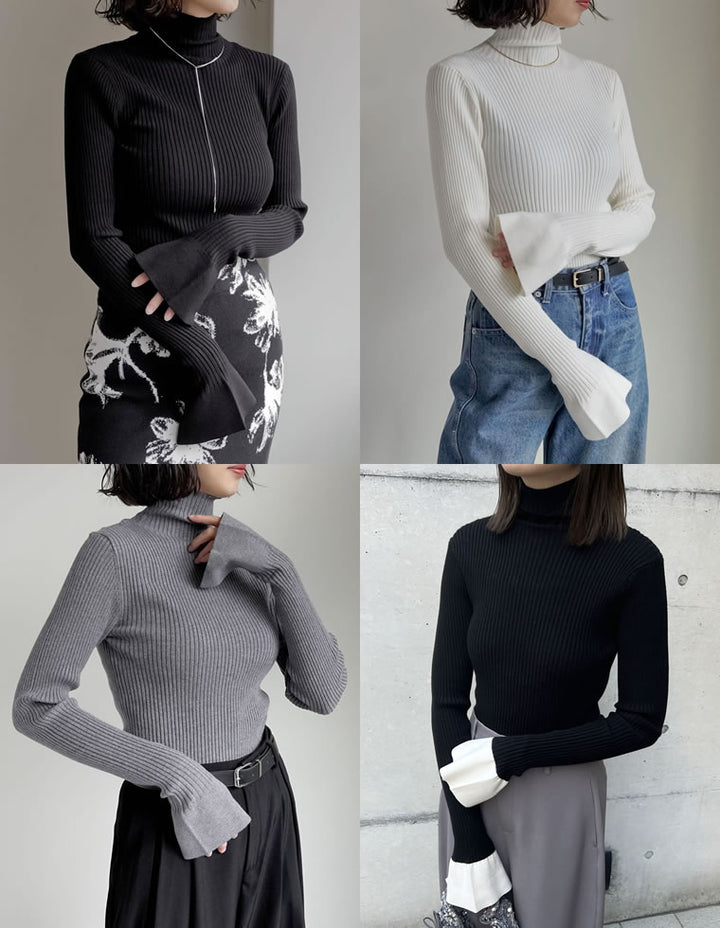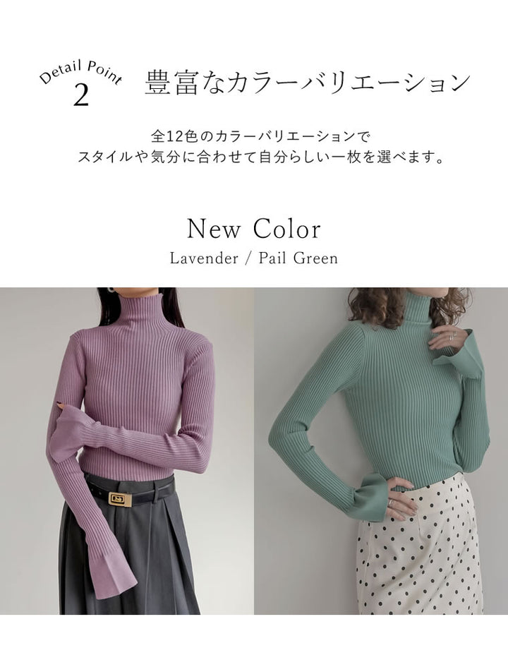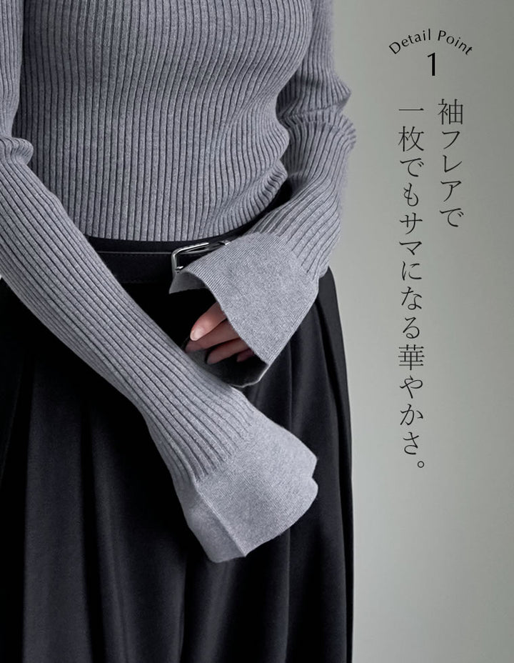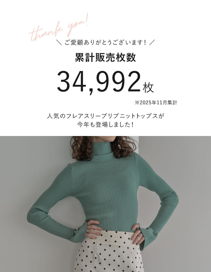 【クーポンで20%OFF¥3,498⇒¥2,798】〖クーポンコード:SH_20_2511〗[2025AW COLLECTION][販売枚数3.4万枚突破!][華奢見えが叶う]フレアスリーブハイネックリブニットトップス