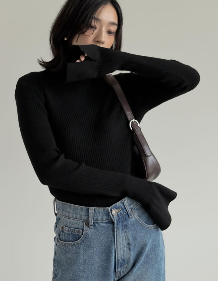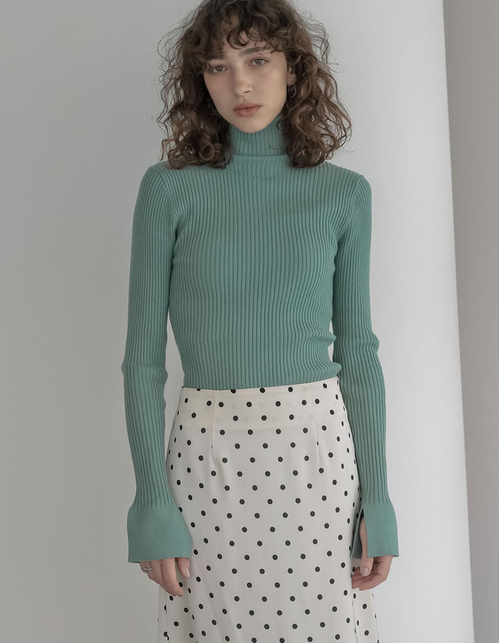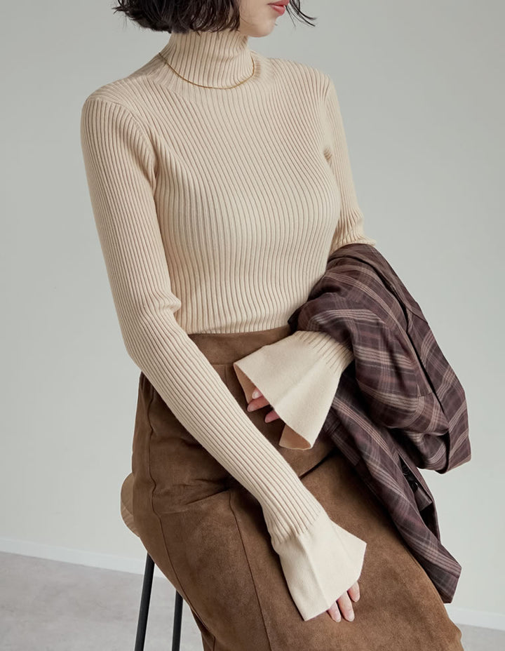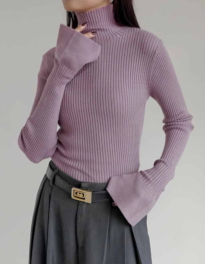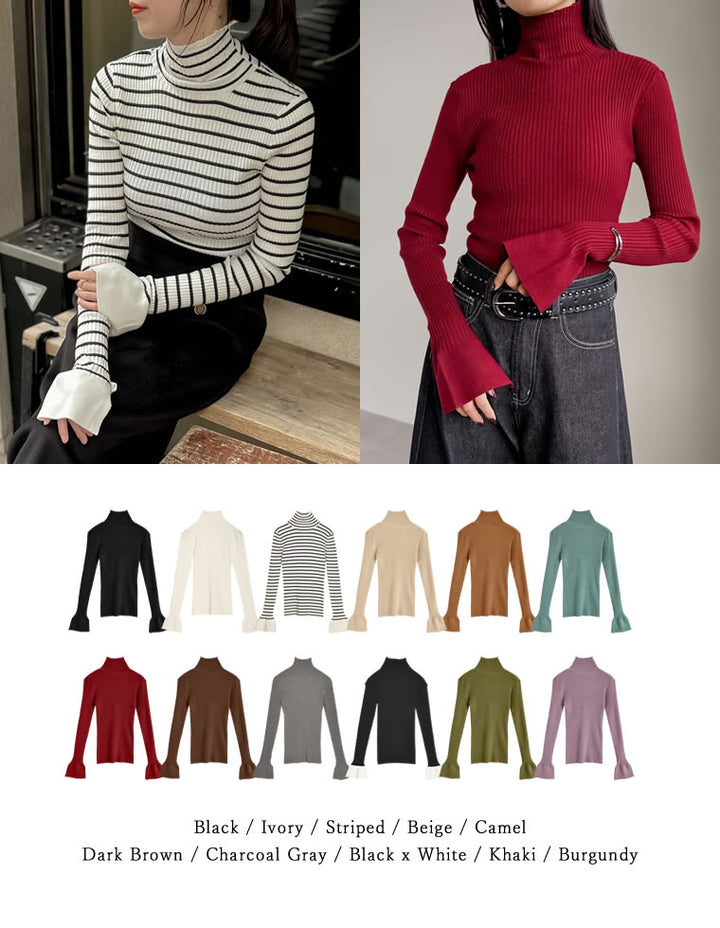 【クーポンで20%OFF¥3,498⇒¥2,798】〖クーポンコード:SH_20_2511〗[2025AW COLLECTION][販売枚数3.4万枚突破!][華奢見えが叶う]フレアスリーブハイネックリブニットトップス
