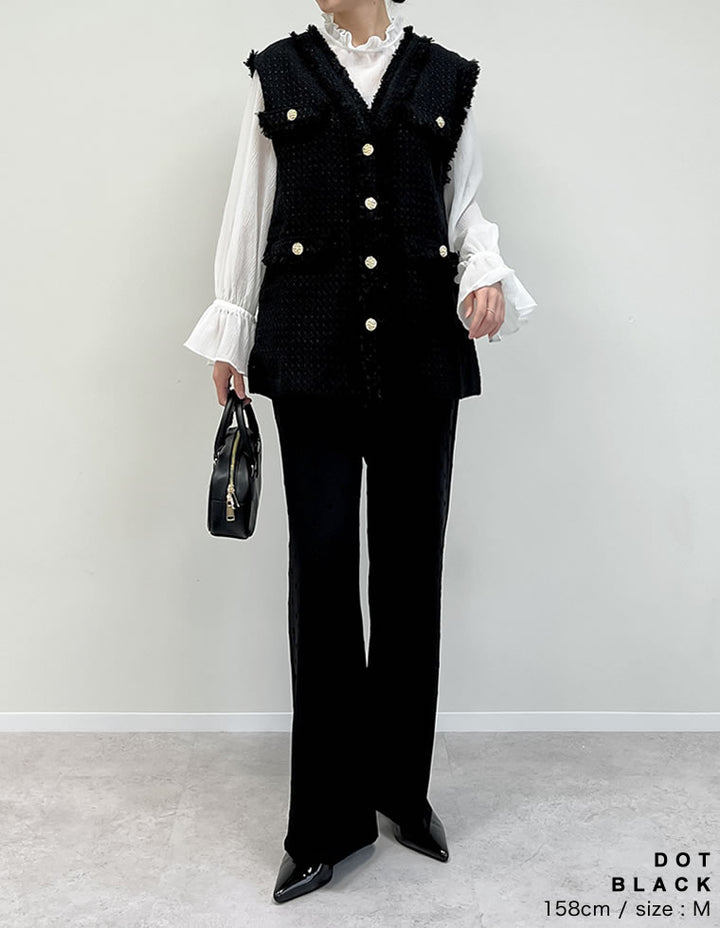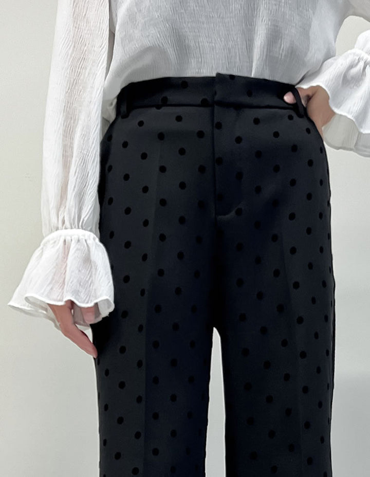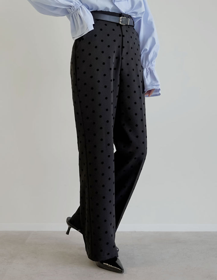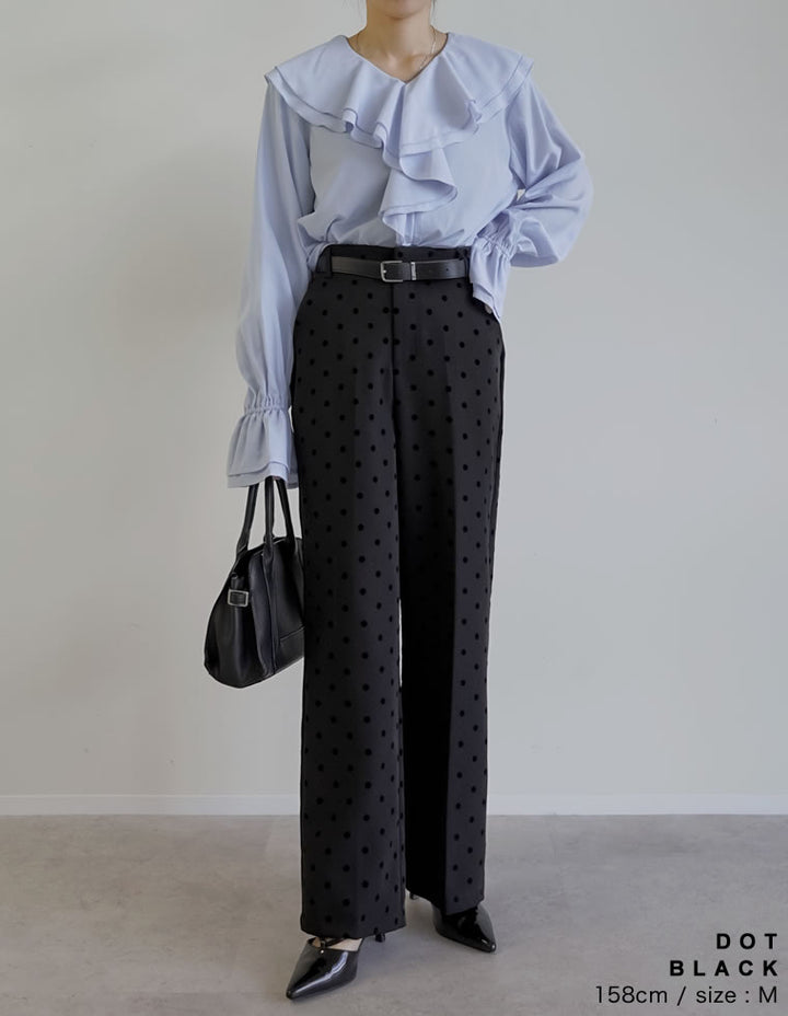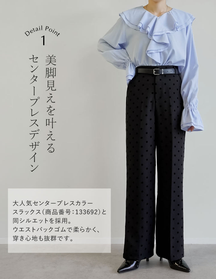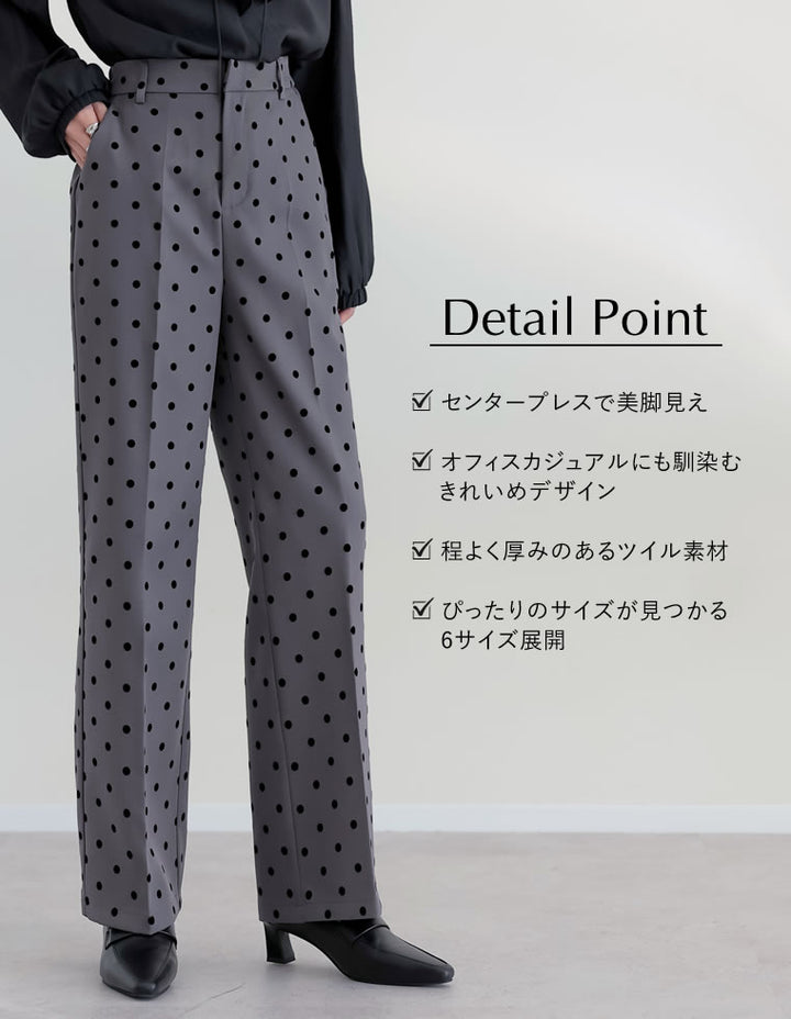 [2025AW COLLECTION][オケージョン セレモニー][低身長/高身長/大きいサイズ有]カットツイルフロッキードットストレートパンツ
