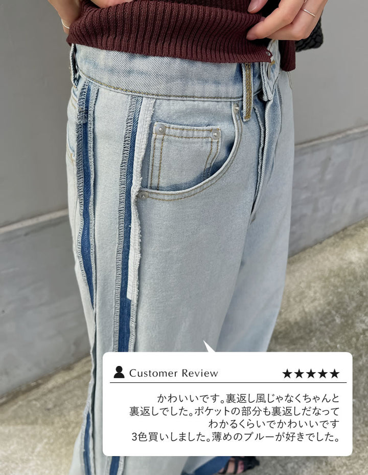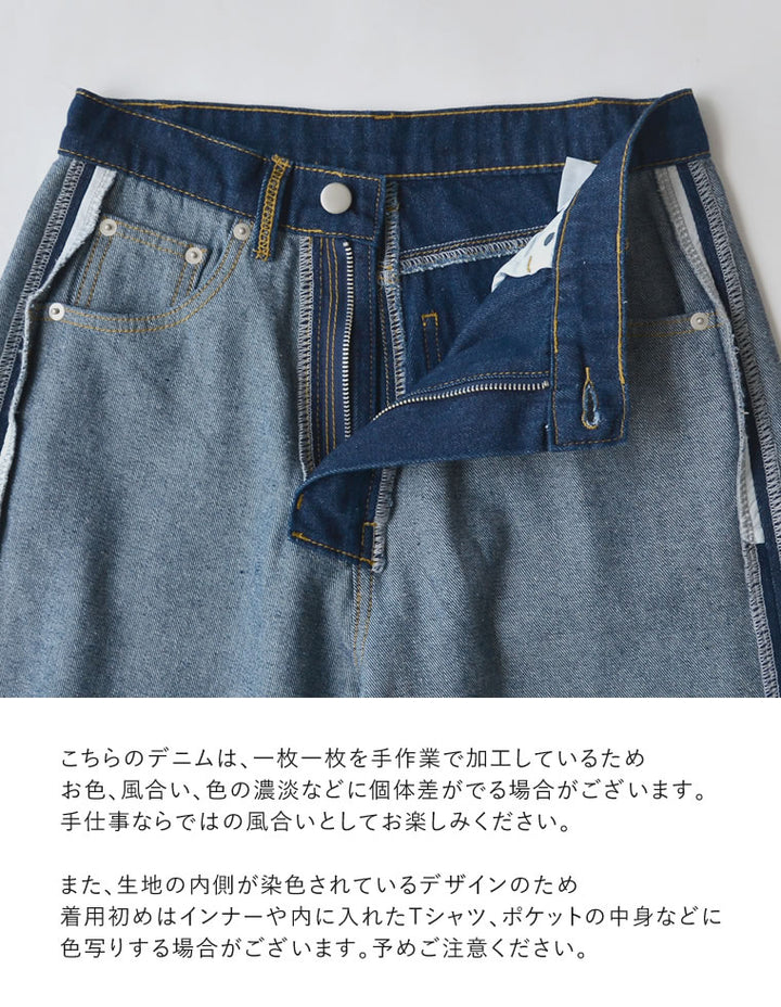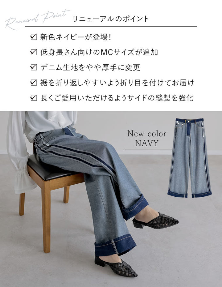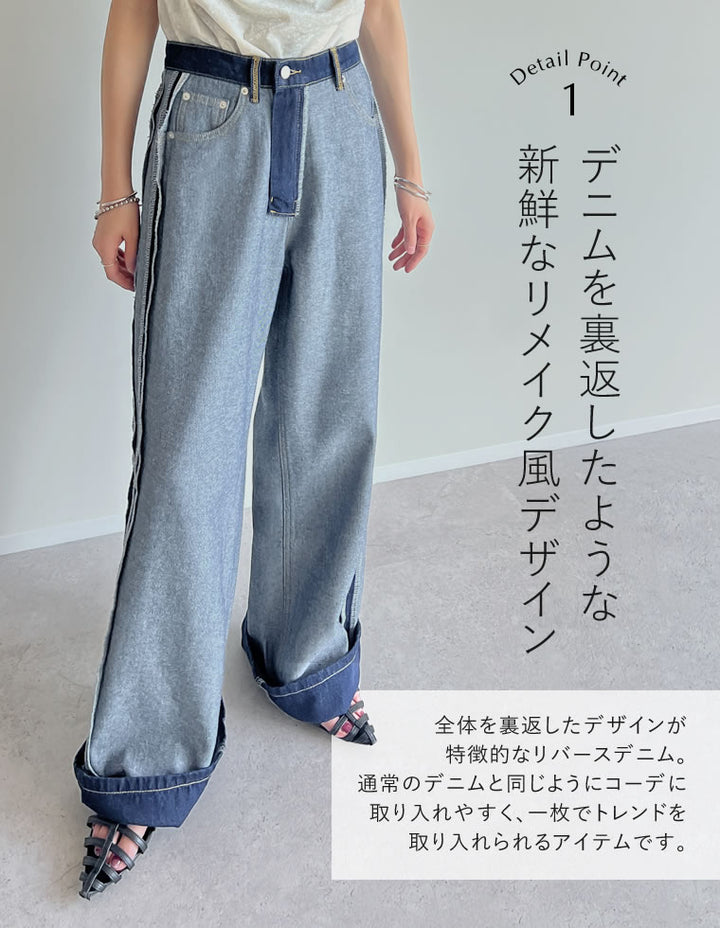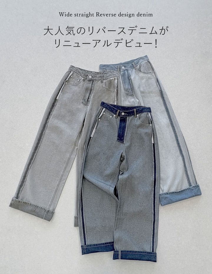 【クーポンで20%OFF ¥5,998⇒¥4,798 】[2025AW COLLECTION][リニューアル][新色追加][低身長/高身長サイズ有]ワイドストレートリバースデニムパンツ