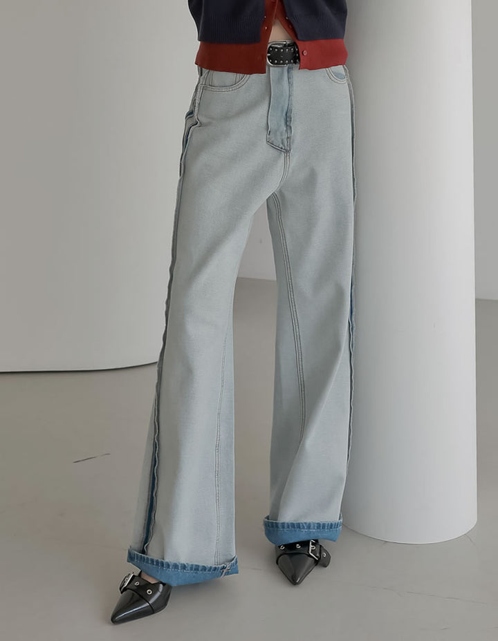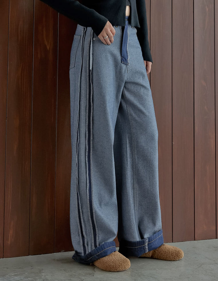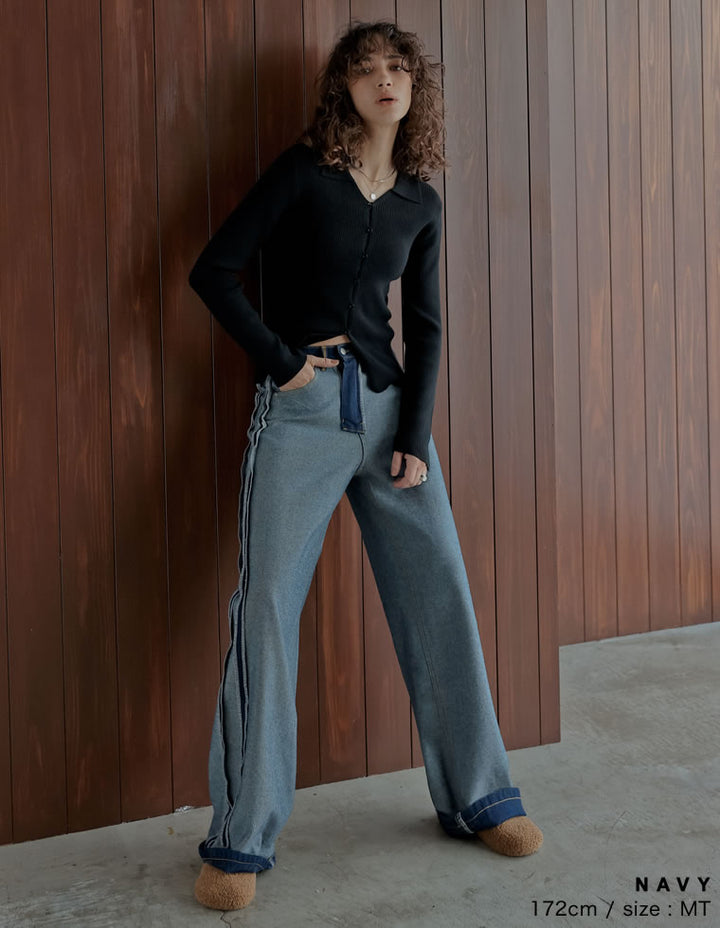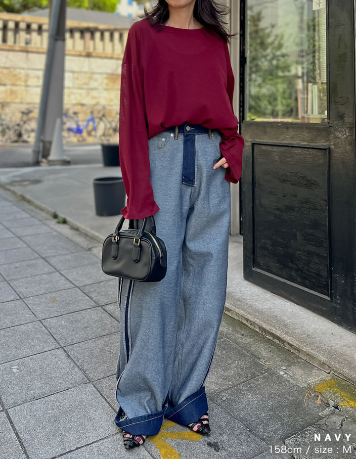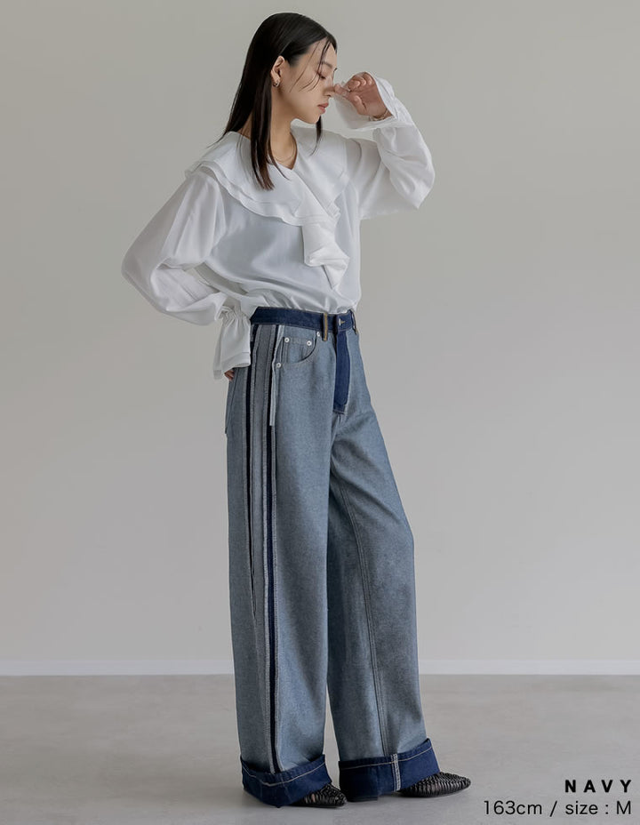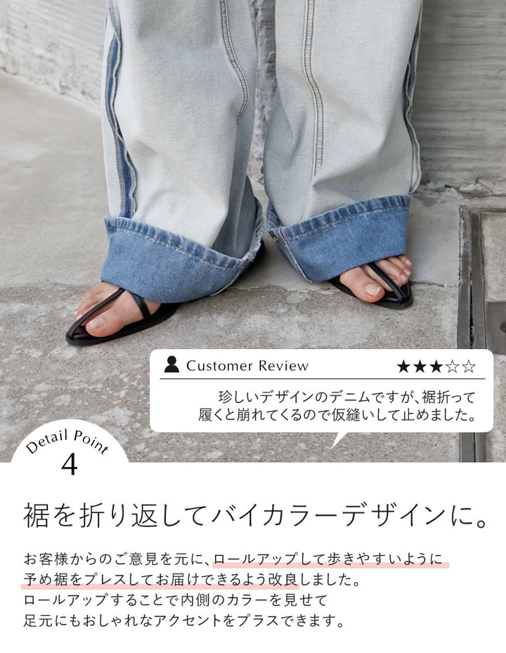 【クーポンで20%OFF ¥5,998⇒¥4,798 】[2025AW COLLECTION][リニューアル][新色追加][低身長/高身長サイズ有]ワイドストレートリバースデニムパンツ
