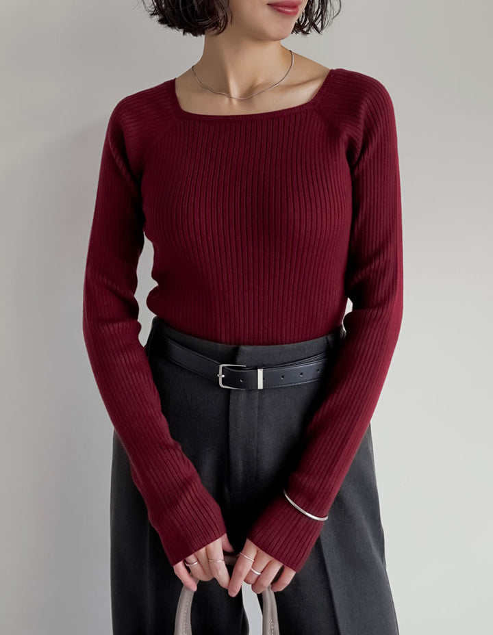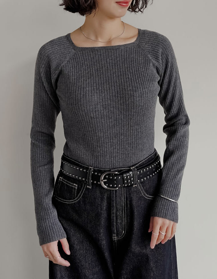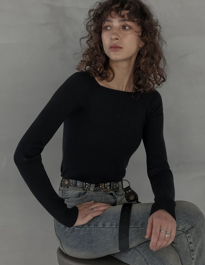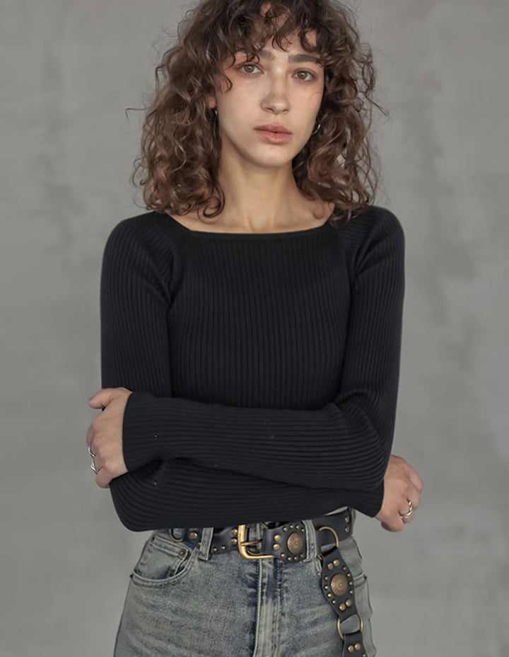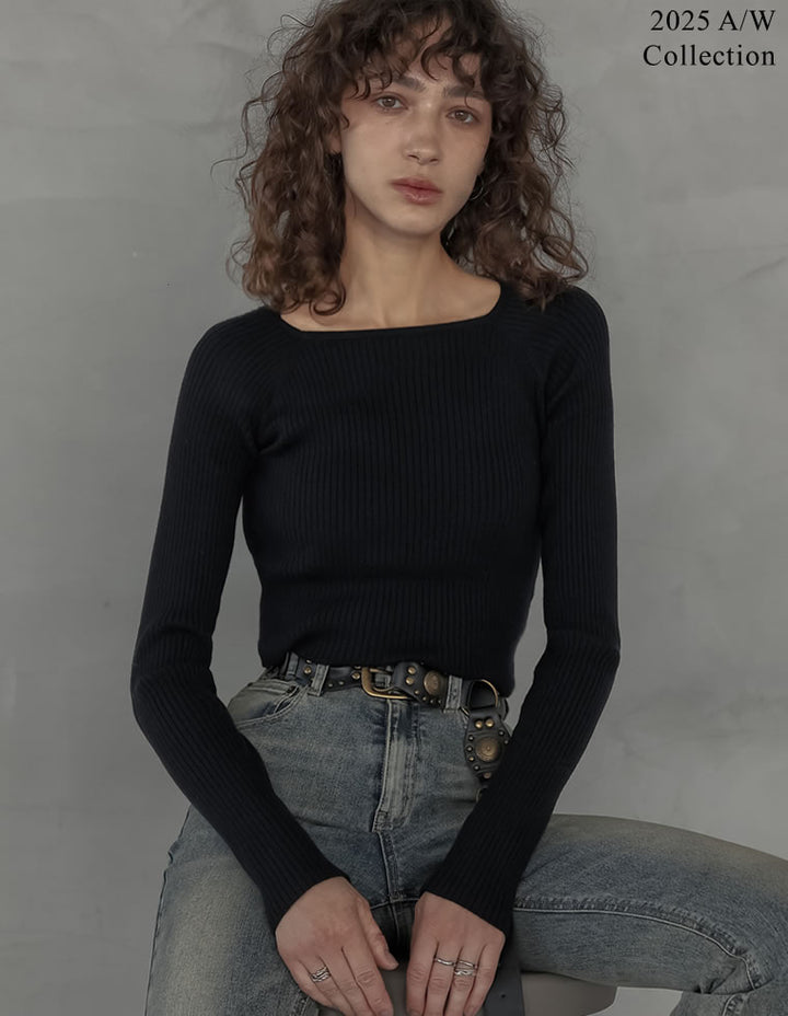 【クーポンで20%OFF ¥3,498⇒¥2,798 】〖クーポンコード:SH_20_2510〗[2025AW COLLECTION]スクエアネックリブニットトップス