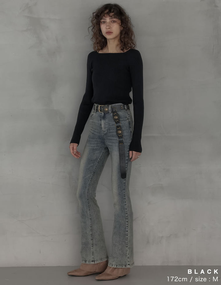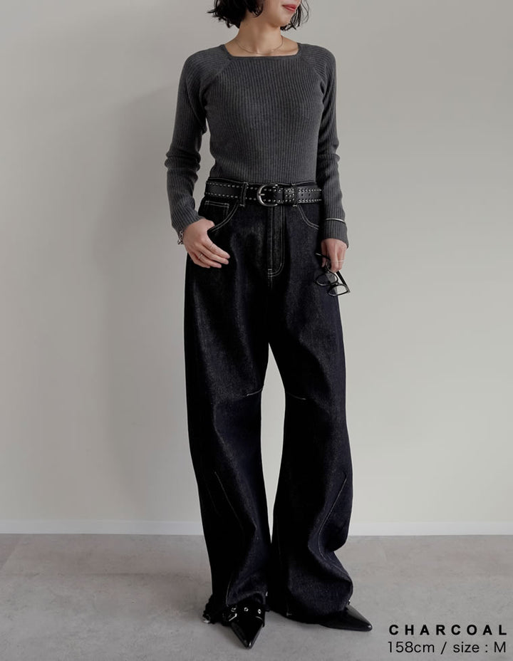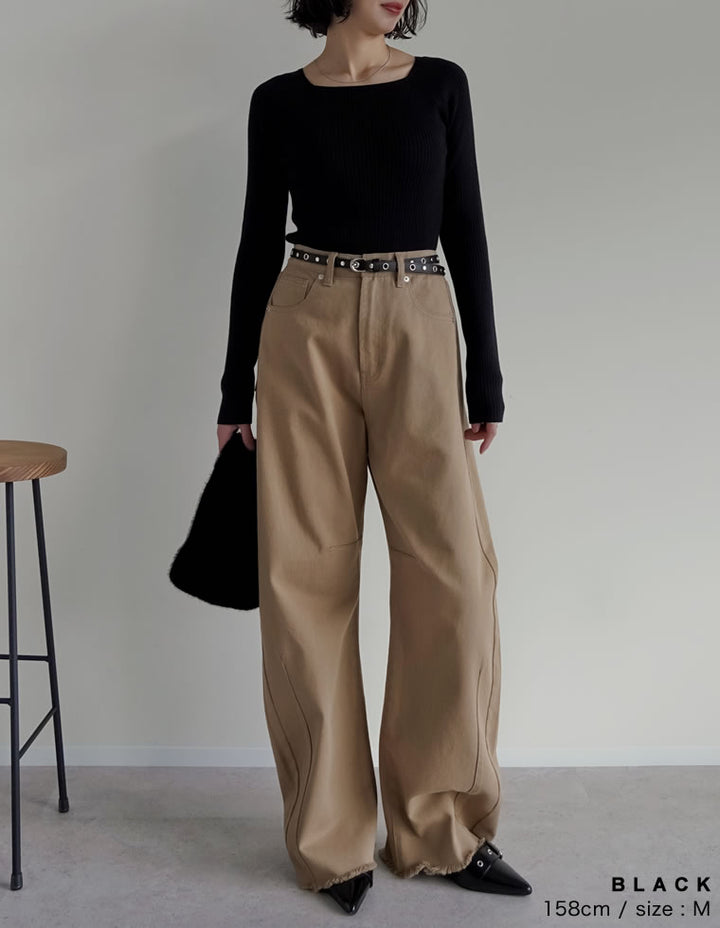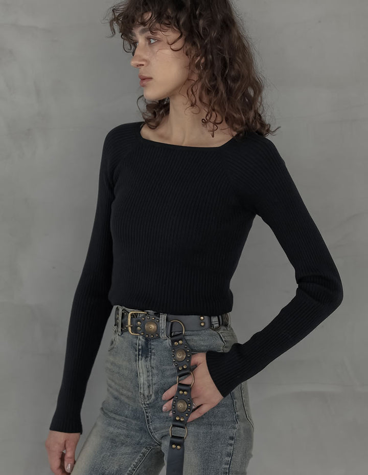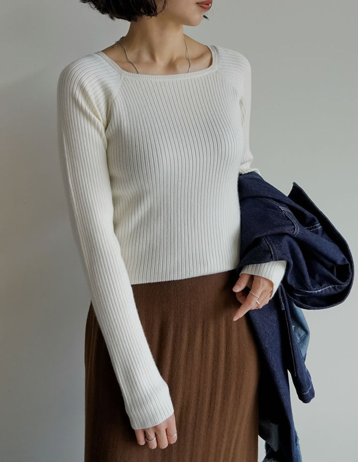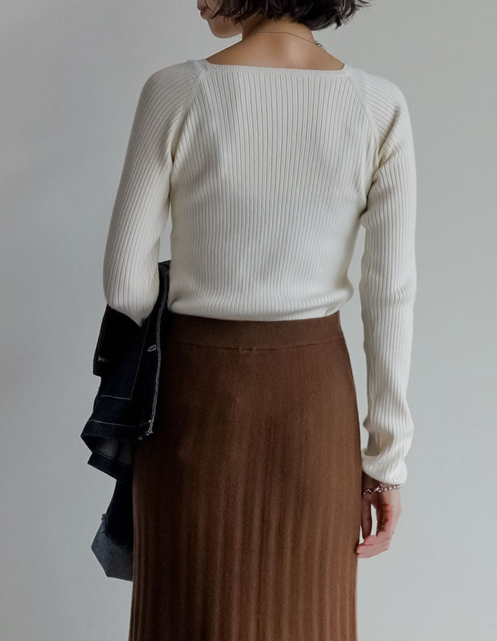 【クーポンで20%OFF ¥3,498⇒¥2,798 】〖クーポンコード:SH_20_2510〗[2025AW COLLECTION]スクエアネックリブニットトップス