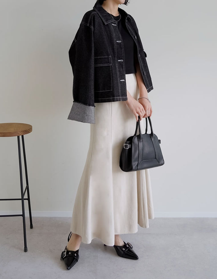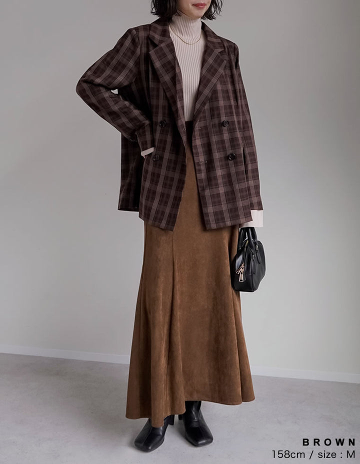 エレガントなスウェード素材が、シンプルなトップスも瞬時にクラスアップしてくれるので、忙しい日でも迷わずおしゃれが完成します。