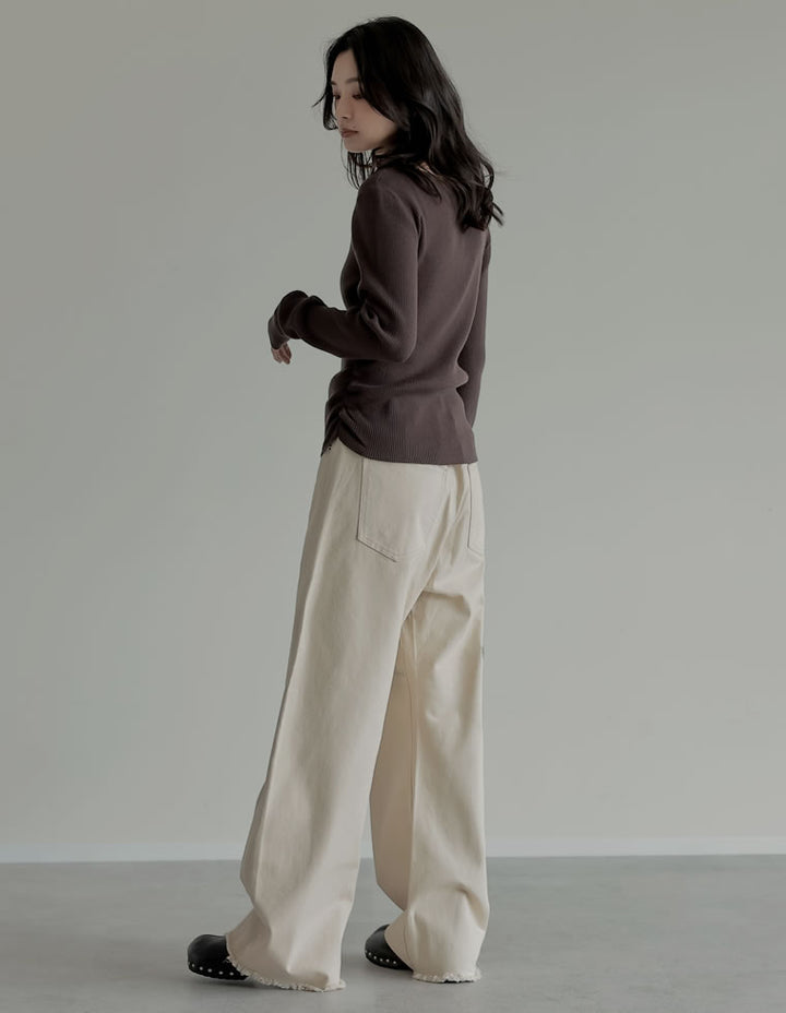 程よいハイウエストデザインで腰周りはすっきりと仕上げ、ワイドなシルエットながらも美脚見えを叶えます。